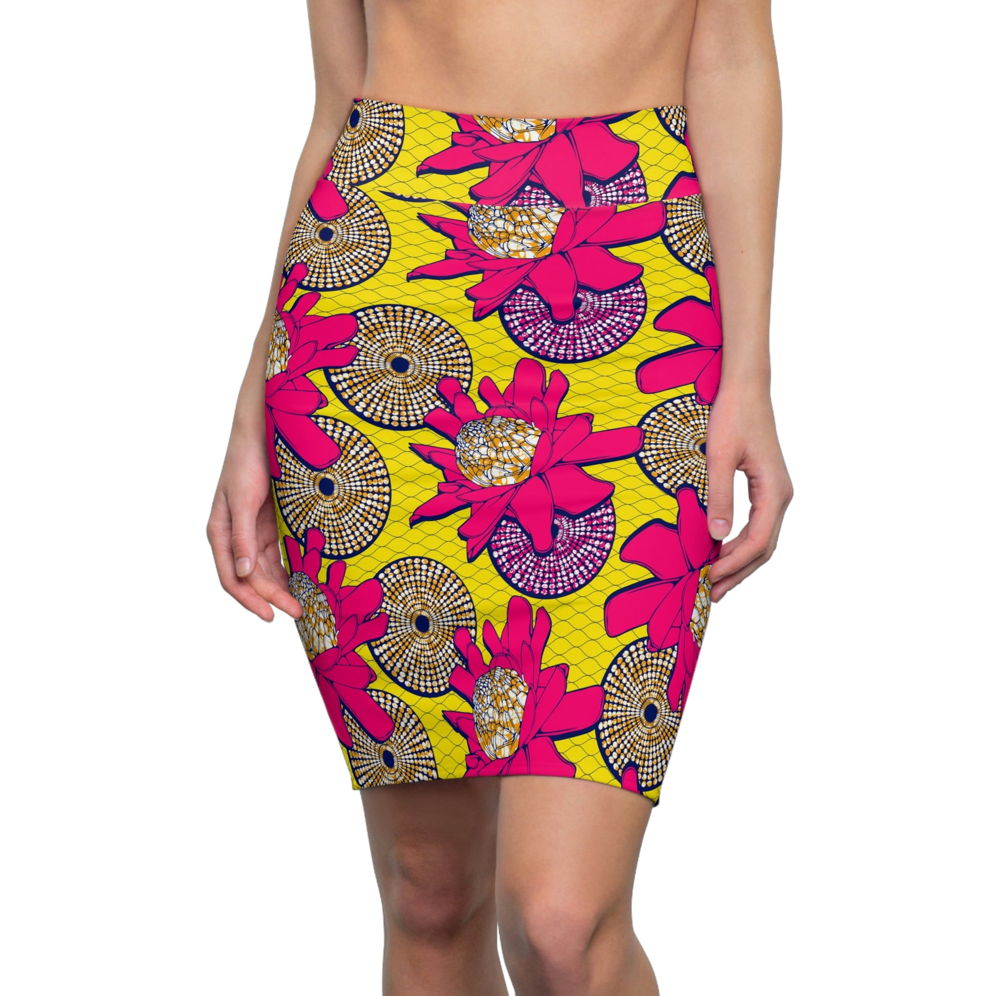 African Vibrant Graphic Flower Print Women's Pencil Skirt