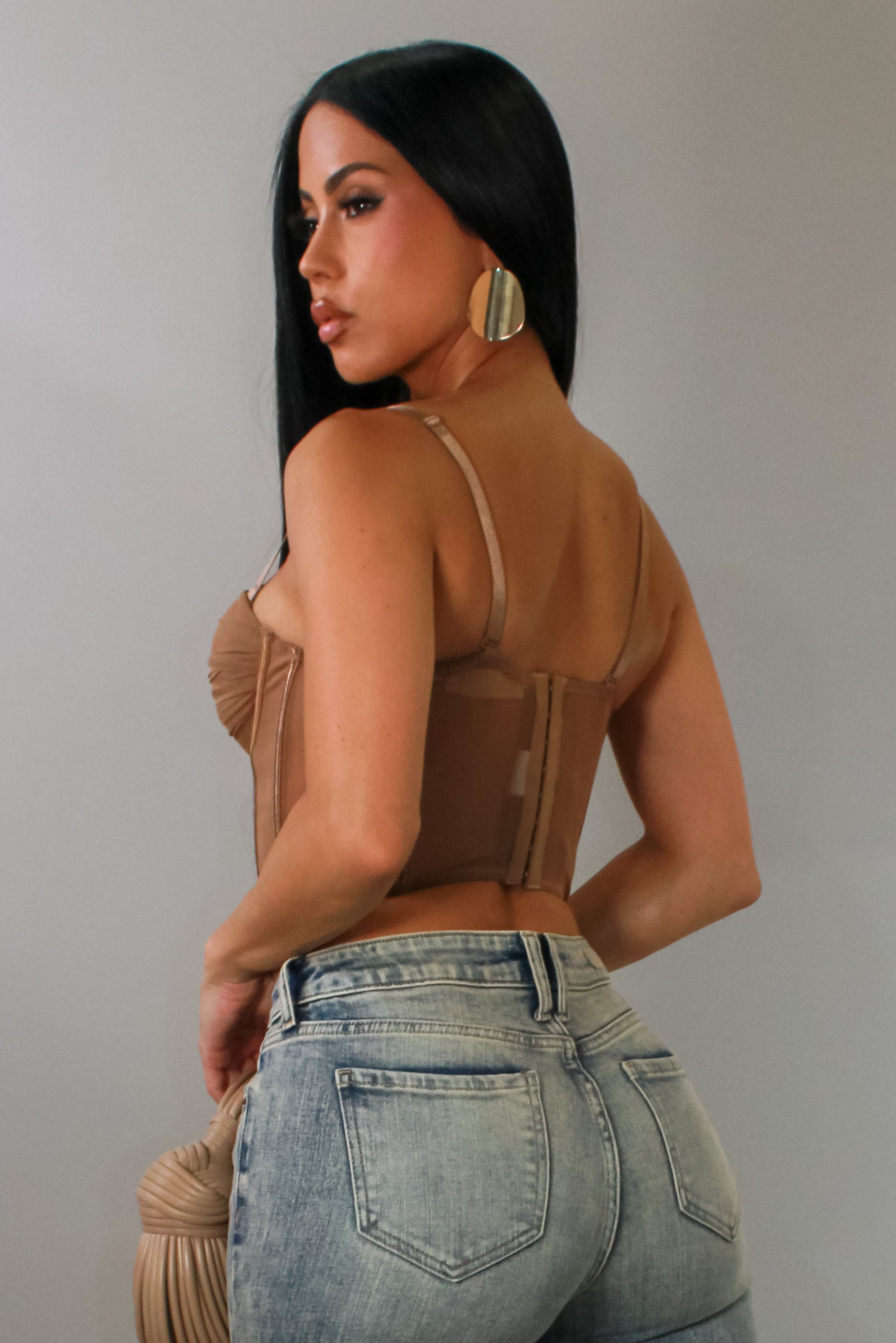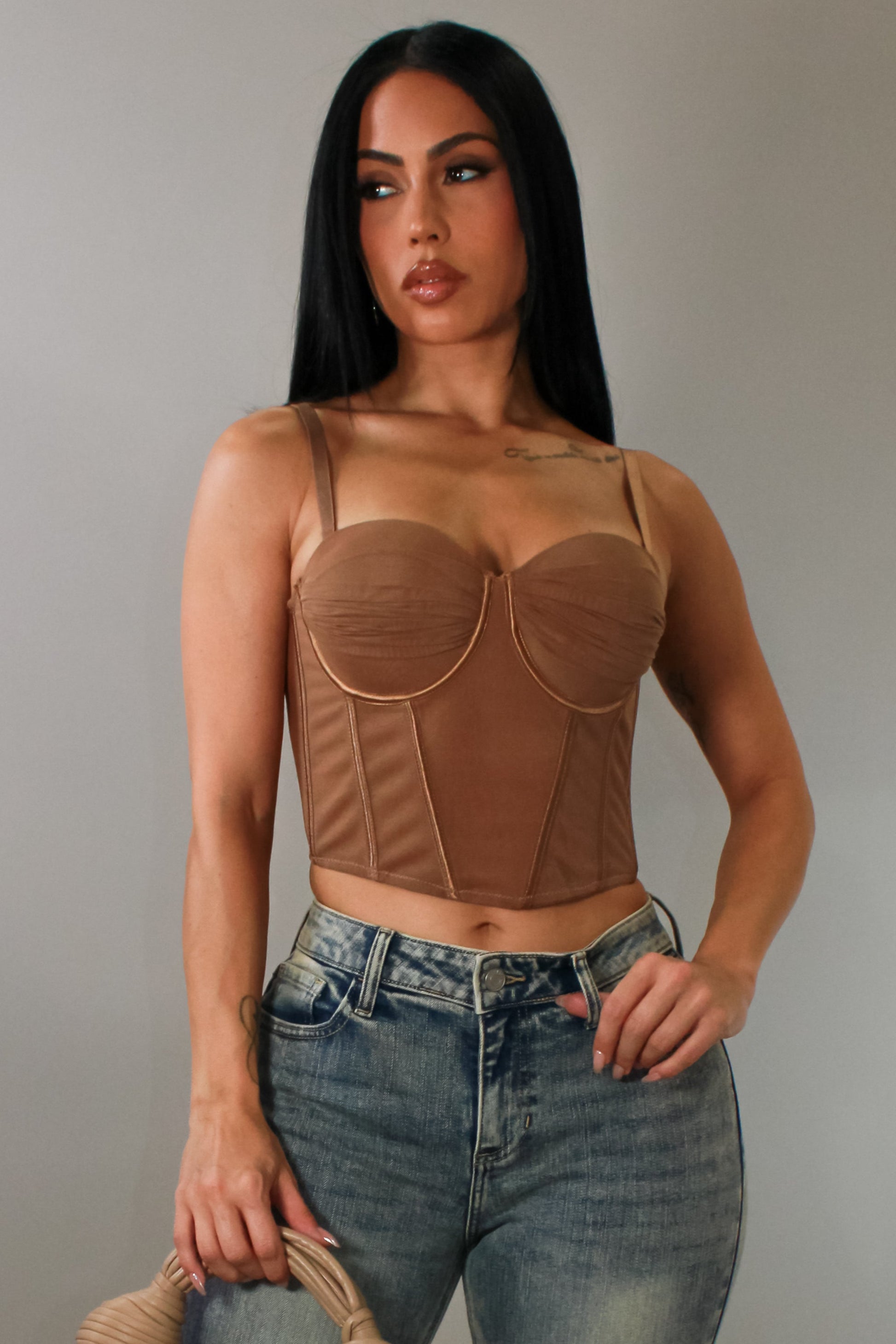 Corset Cropped Top- Brown