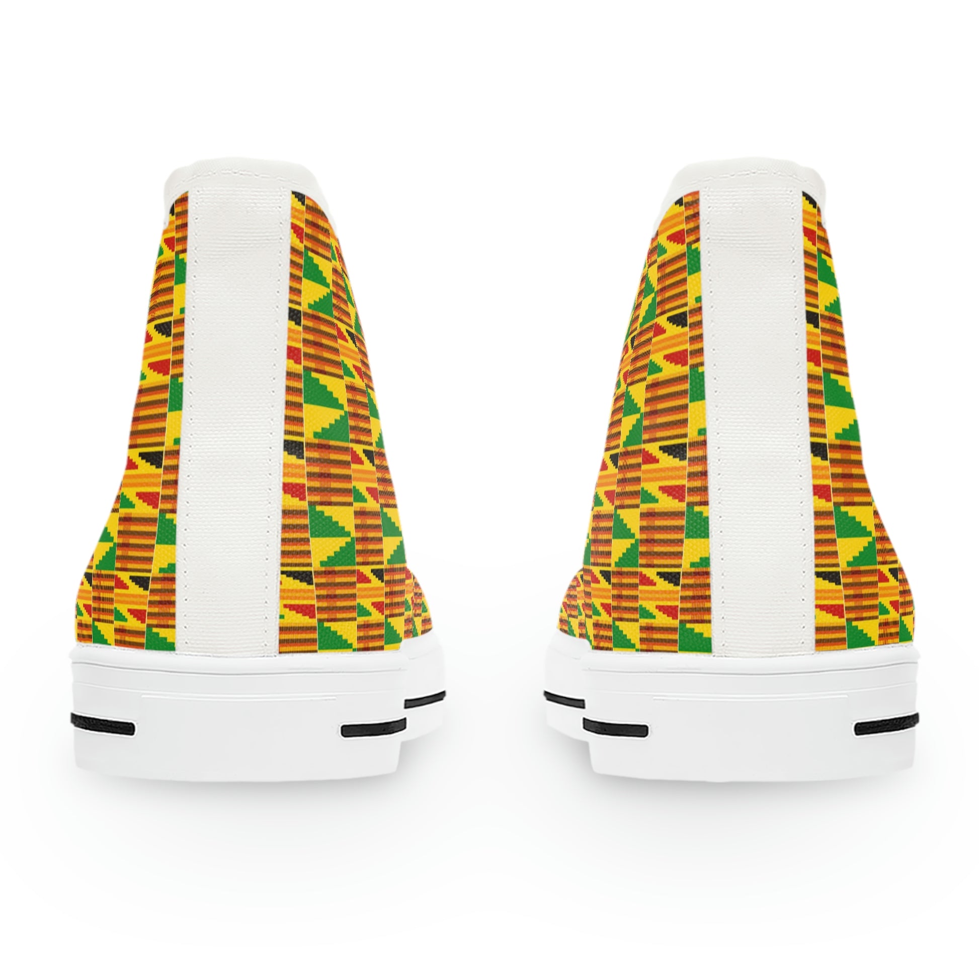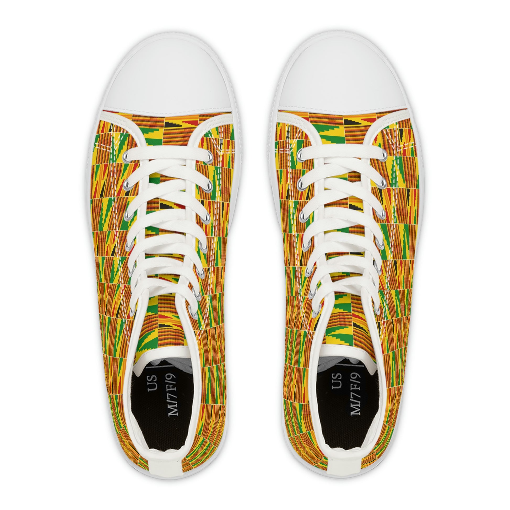 Made with breathable polyester canvas and featuring hi-poly deodorant memory foam insoles, these women's high top sneakers bear all the marks of an awesome shoe. Choose between black or white sole and laces, and enjoy the silver metal eyelets along with the lace-up closure. Add your designs and bring a bespoke staple to life. .: Breathable polyester canvas .: Hi-poly deodorant memory foam insoles .: EVA shock-absorbing layer .: Full wraparound print (left side, right side, tongue) .: Durable rubber outsole .: Black or white decoration Image by [Irina Sevostyanova / Shutterstock]