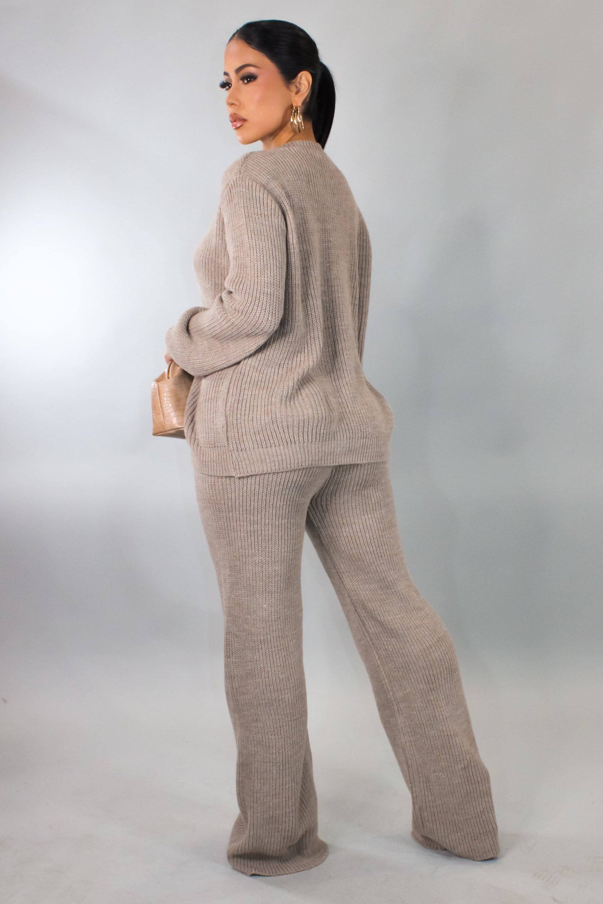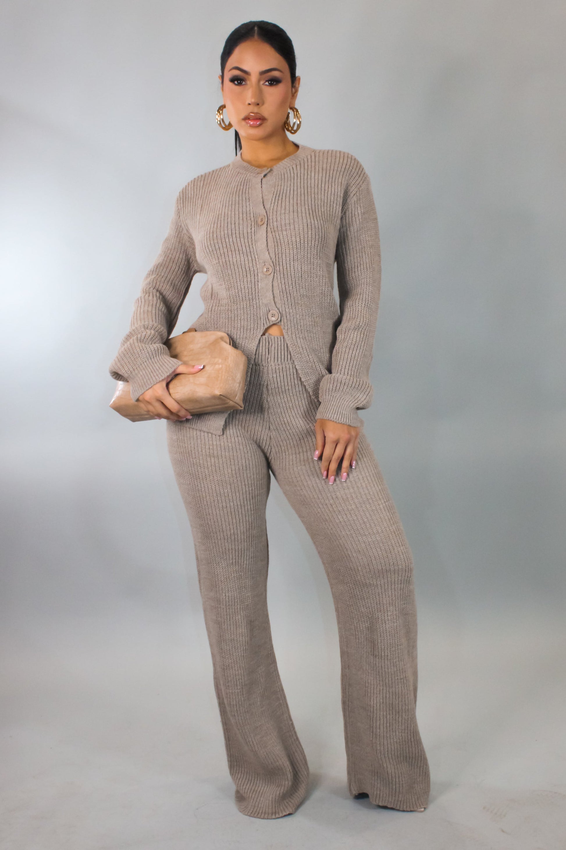 Let's Get Comfy Knit Pants Set-Brown