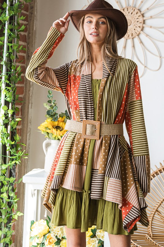 POLKADOT AND STRIPED MIX PRINT OPEN FRONT CARDIGAN