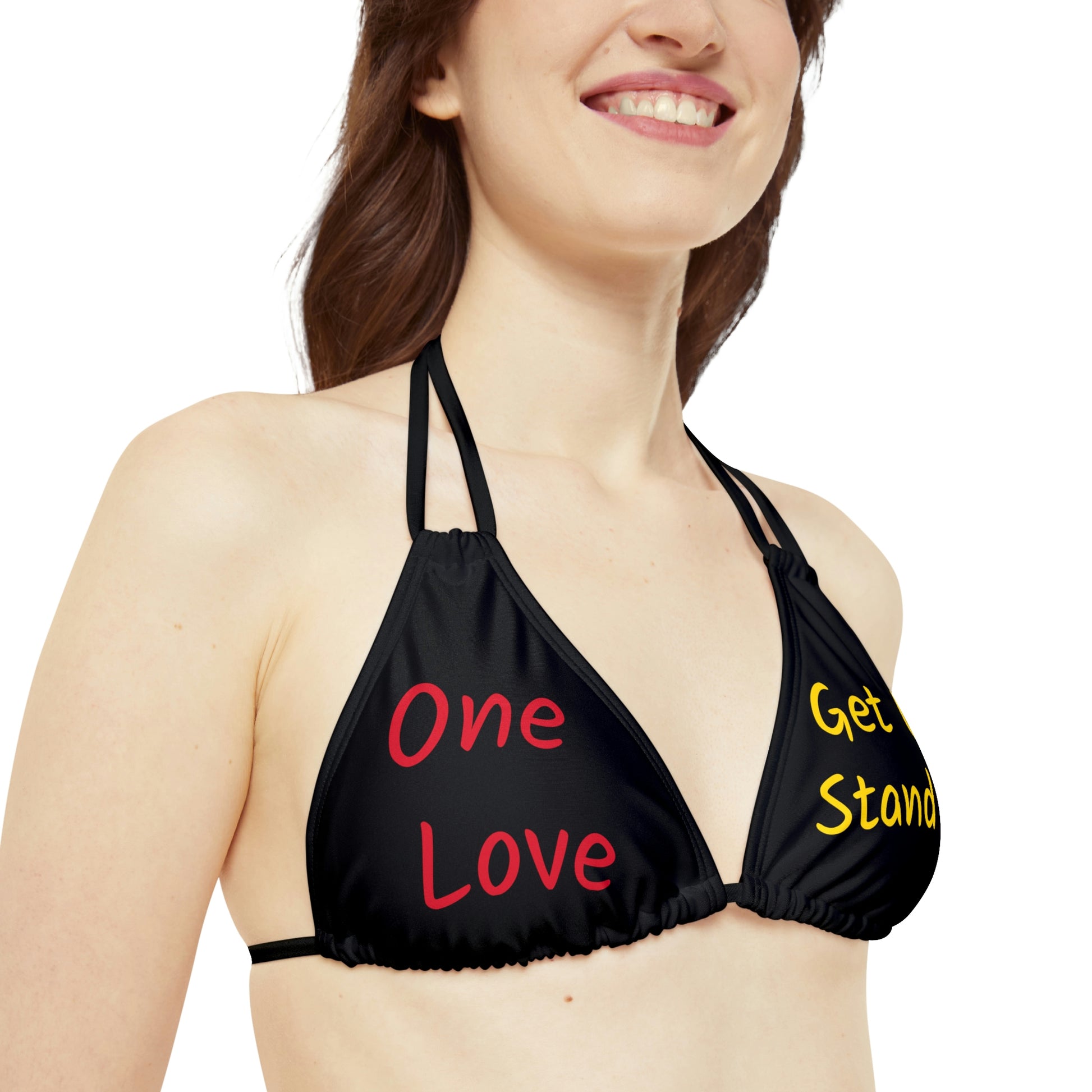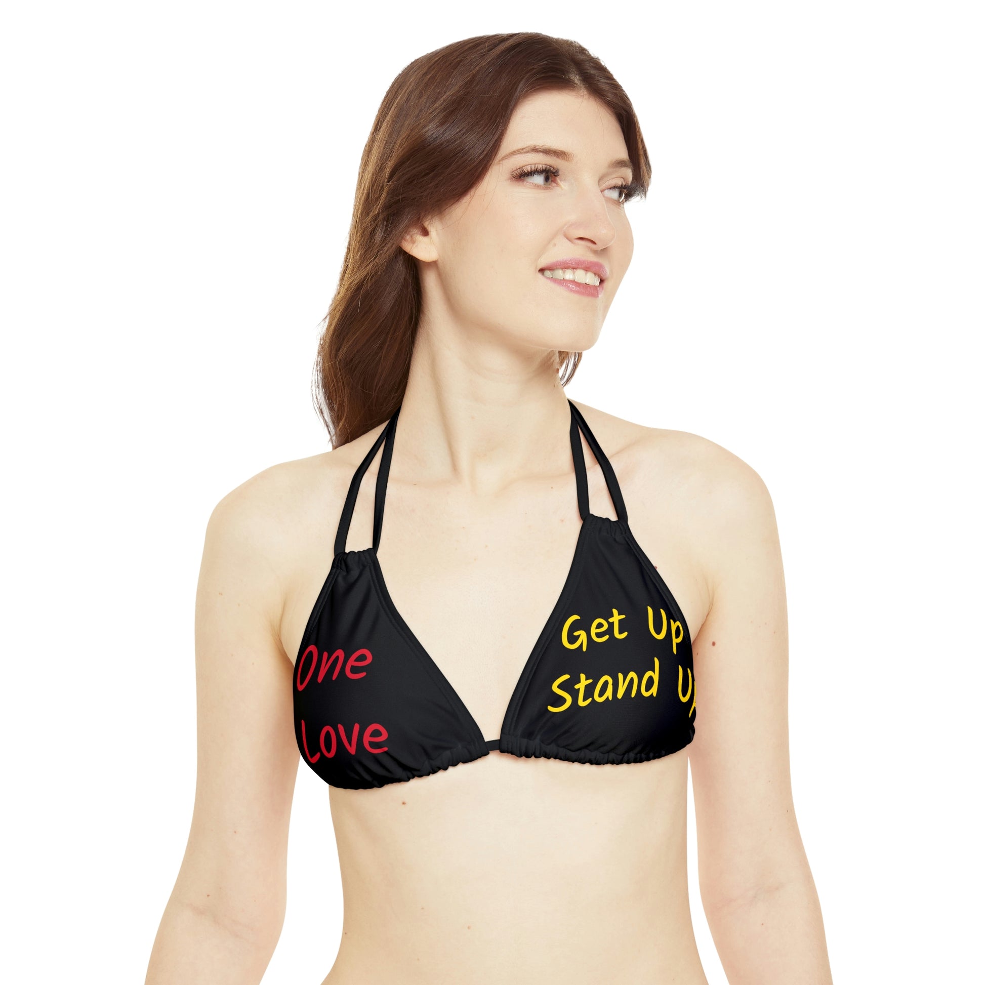 Rasta Reggae Lyric Graphic Print Strappy Bikini Set