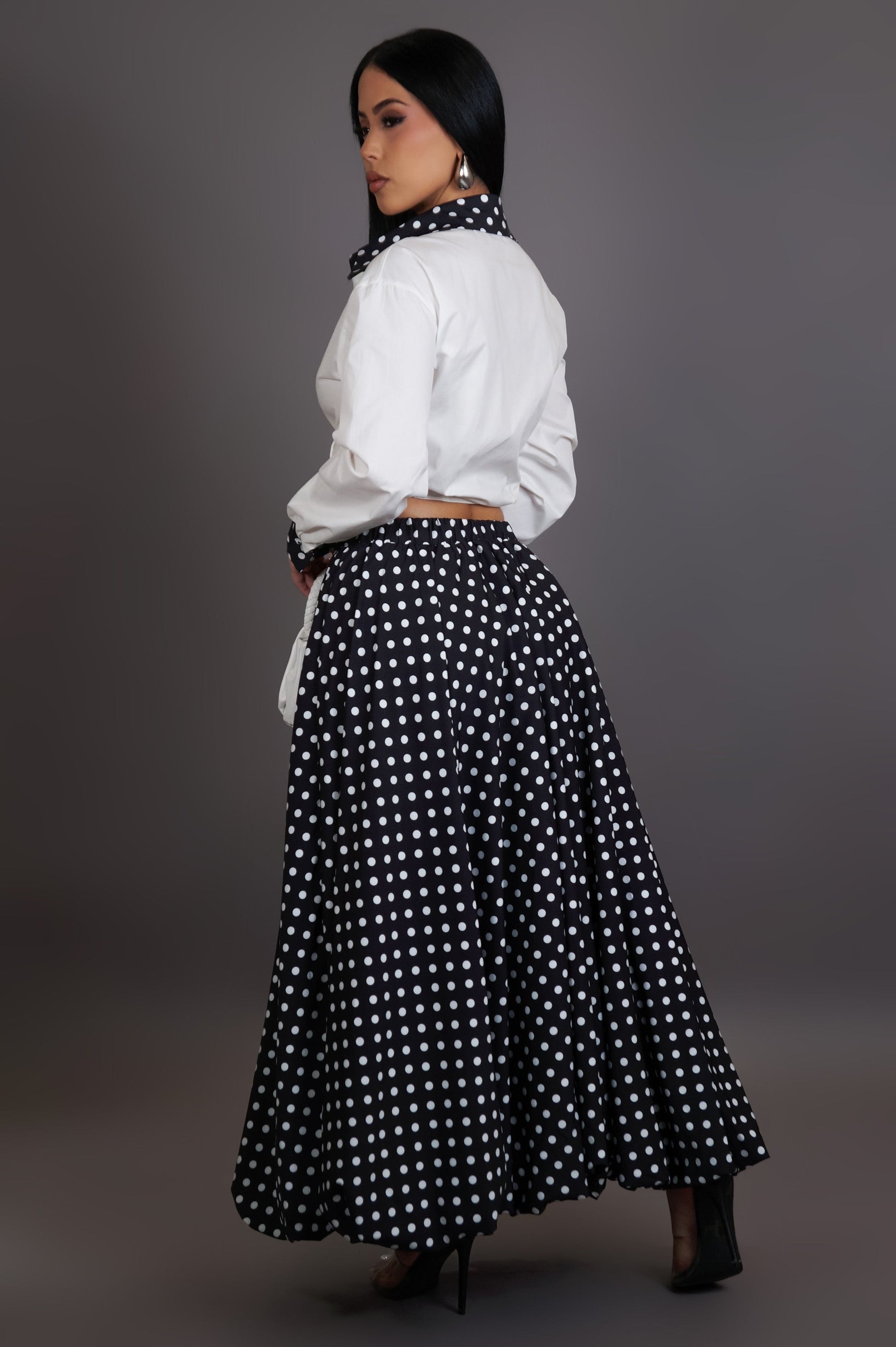 Black & White Polka Dot Skirt Set