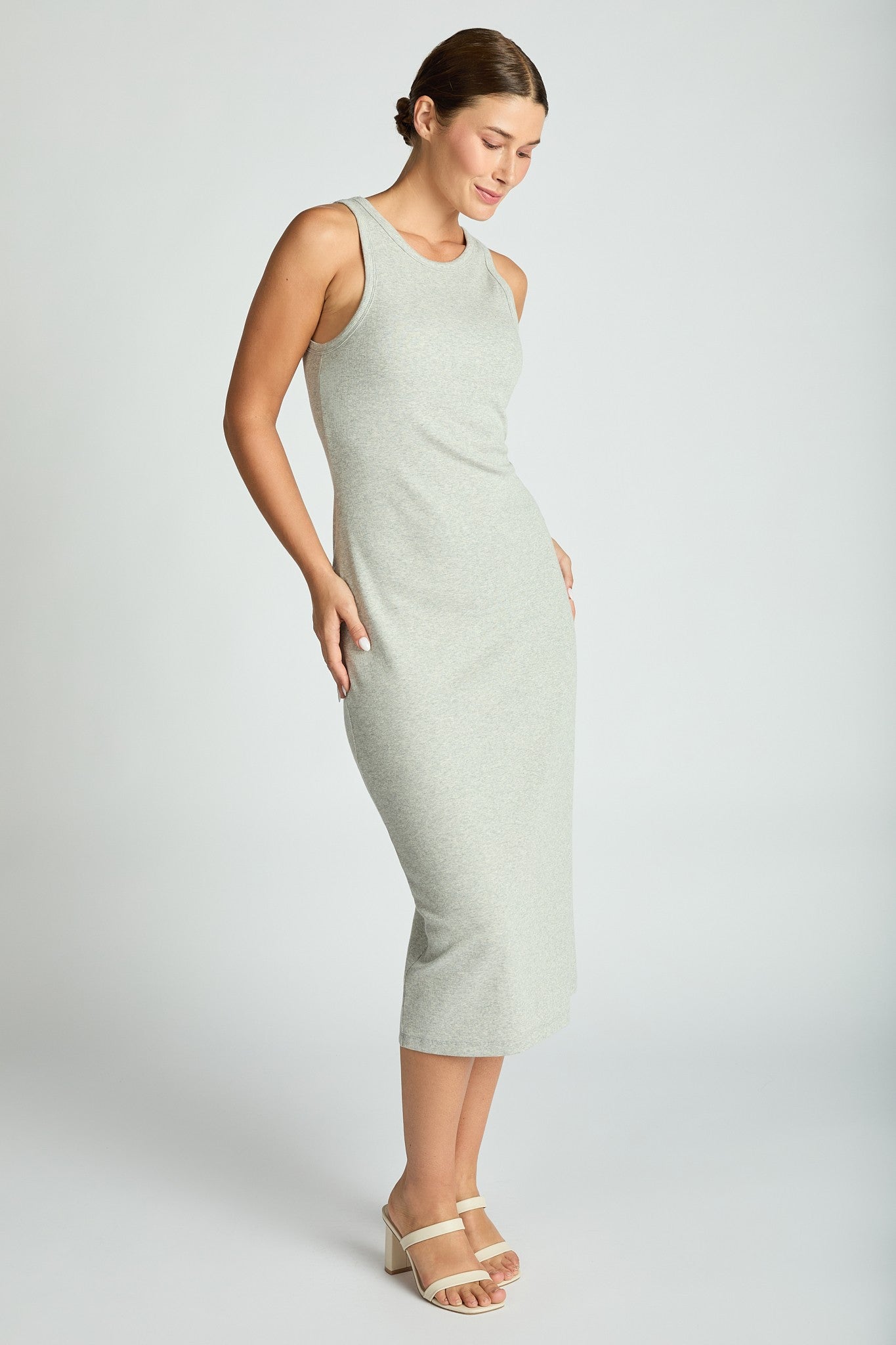 Comfort Collection: Ribbed Sleeveless Built In Bra Dress- Black/Cinnamon/Grey