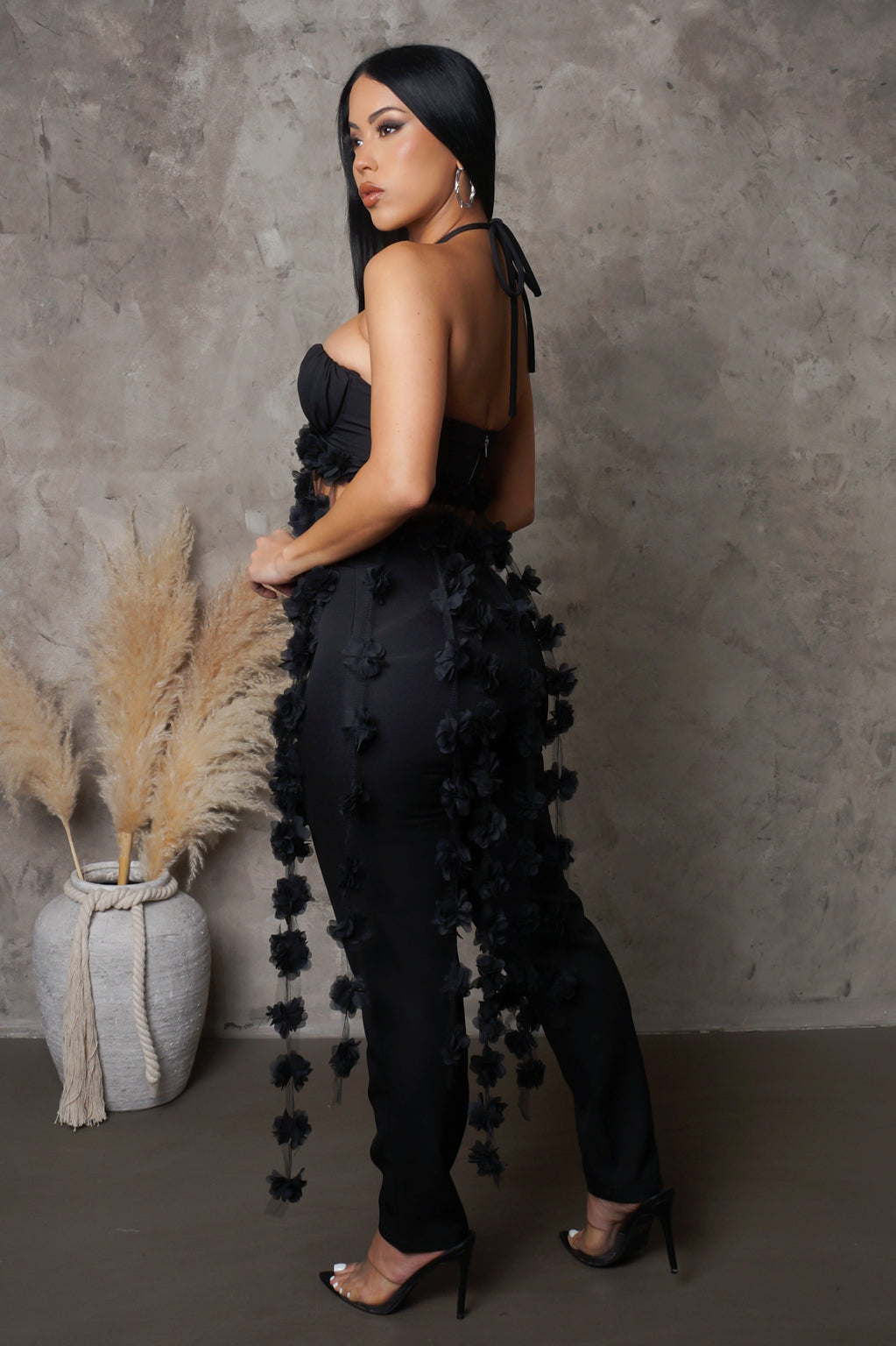 High Low Flower Top & Pants Set