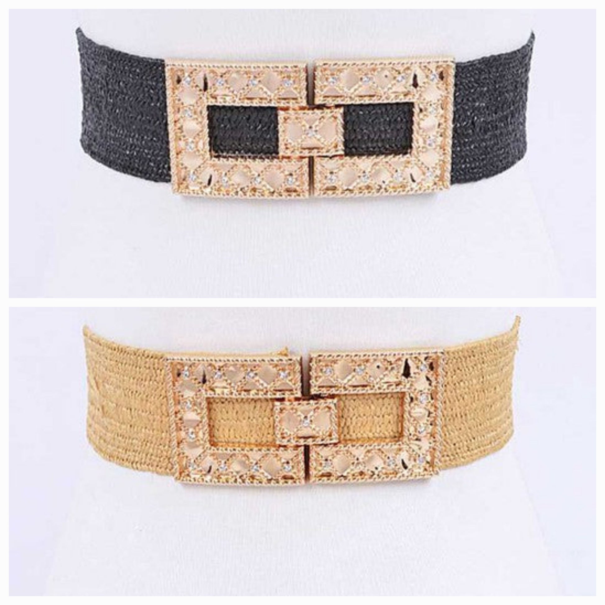 Plus Size Square Buckle Faux Straw Elastic Belt