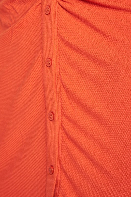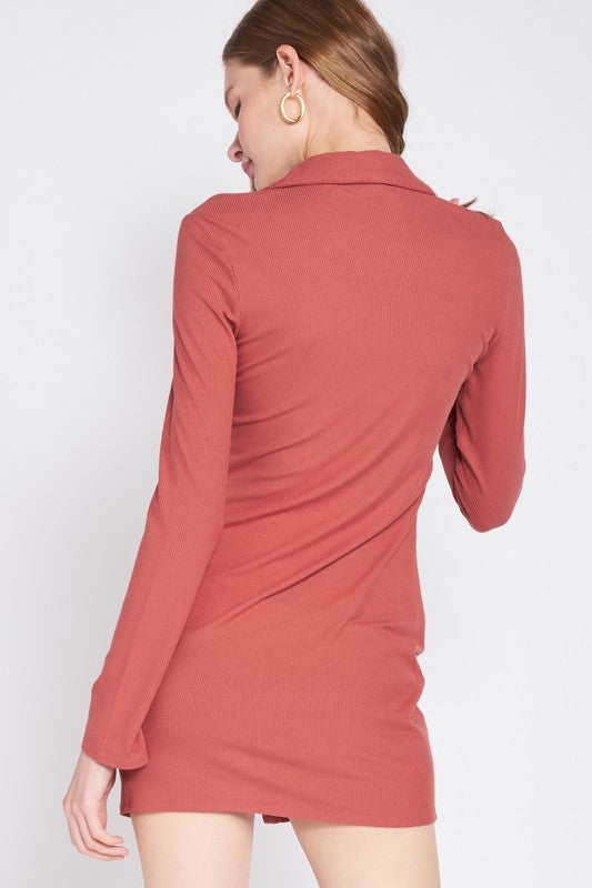 RUST RUCHED LONG SLEEVE DRESS