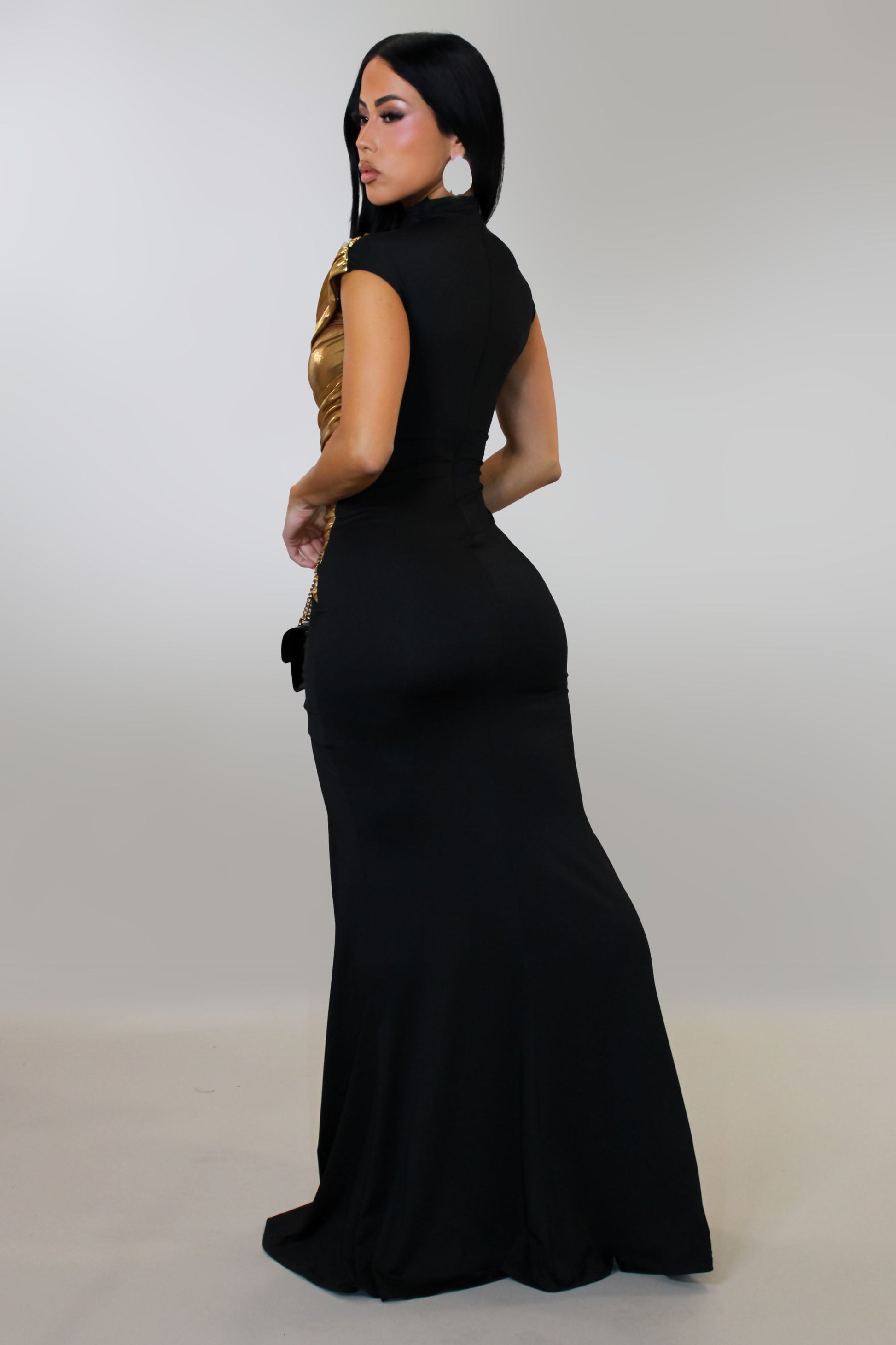 Such a Diva! Metal on Solid Maxi Dress- Gold/Black
