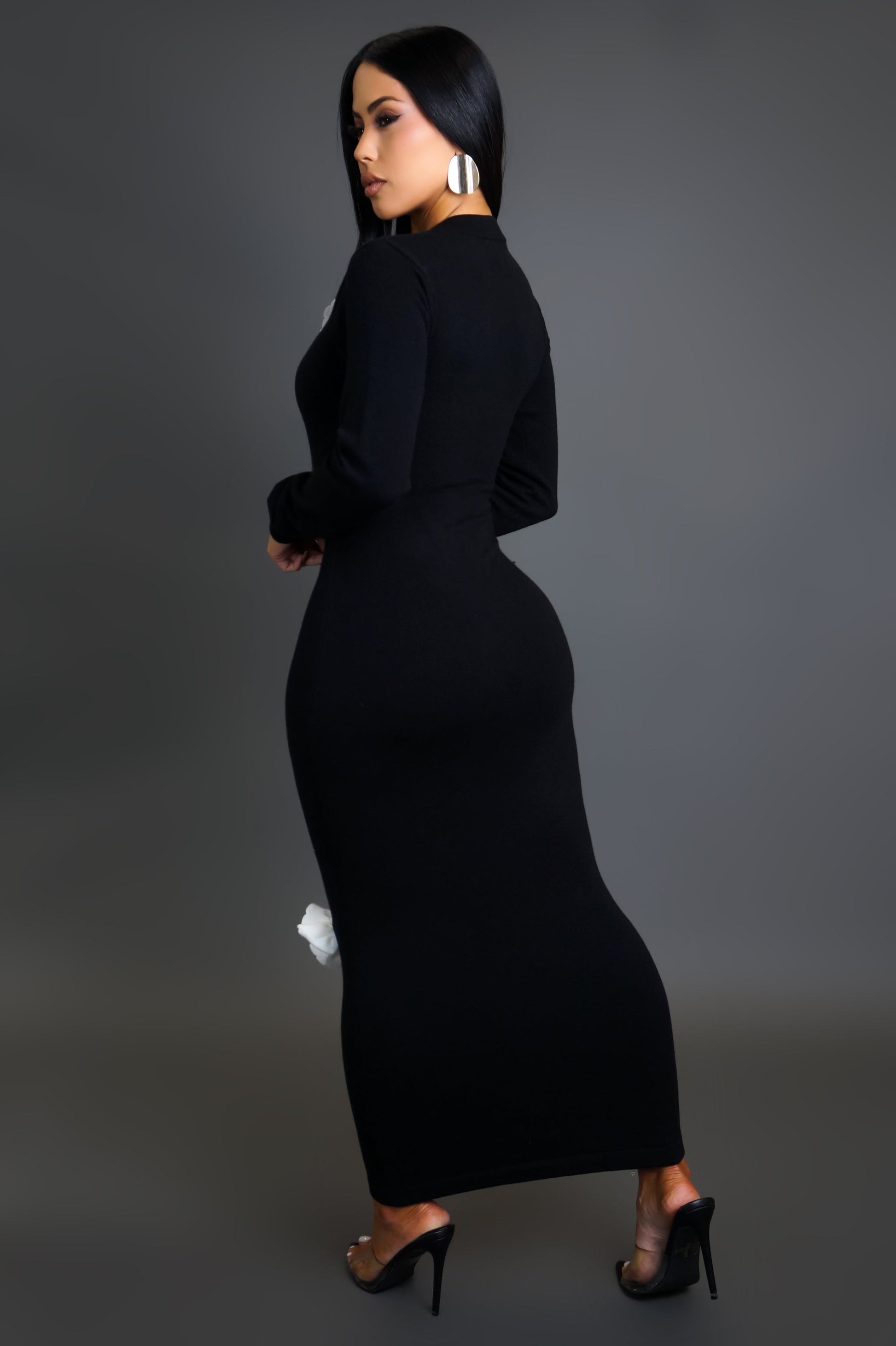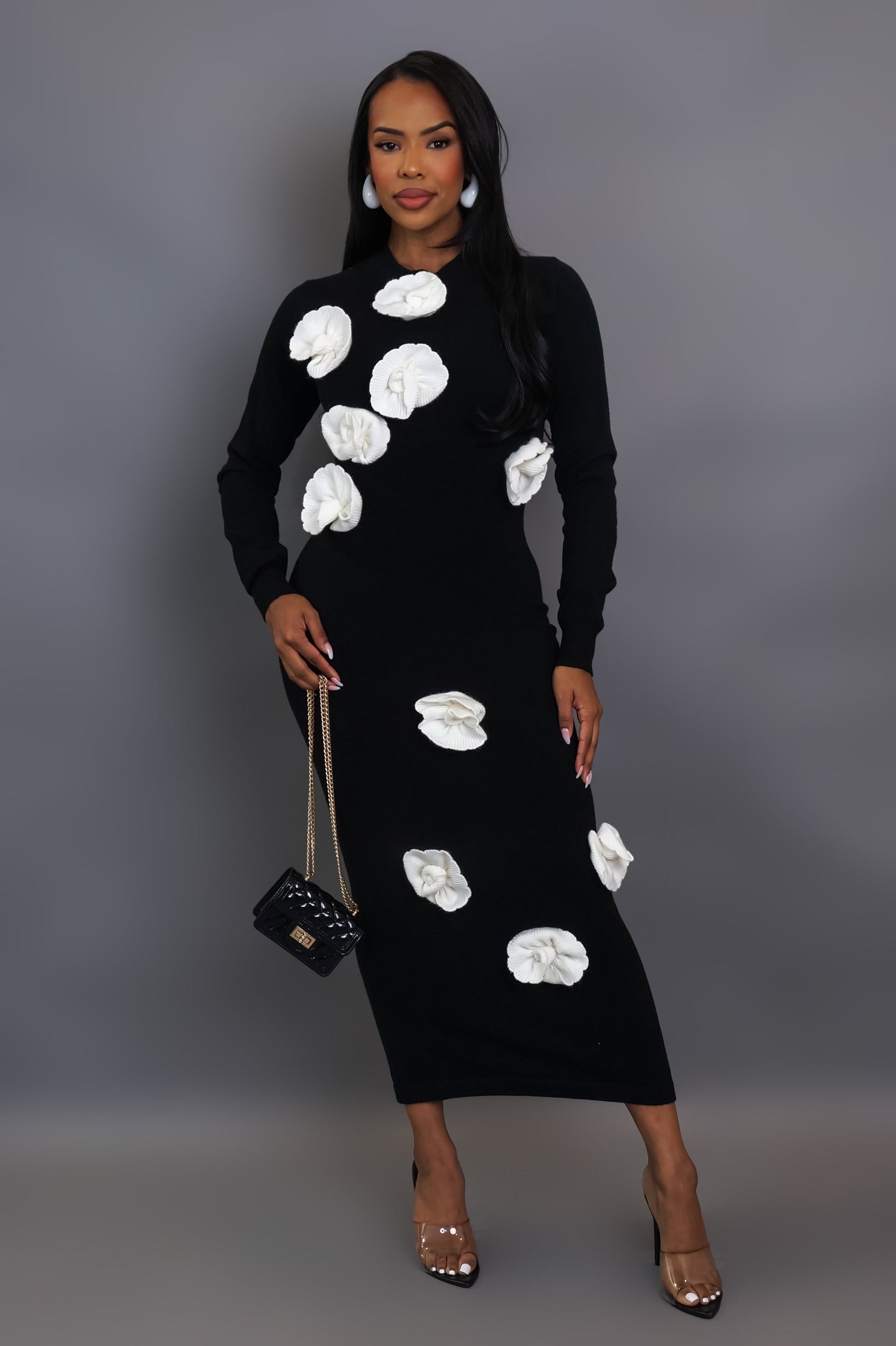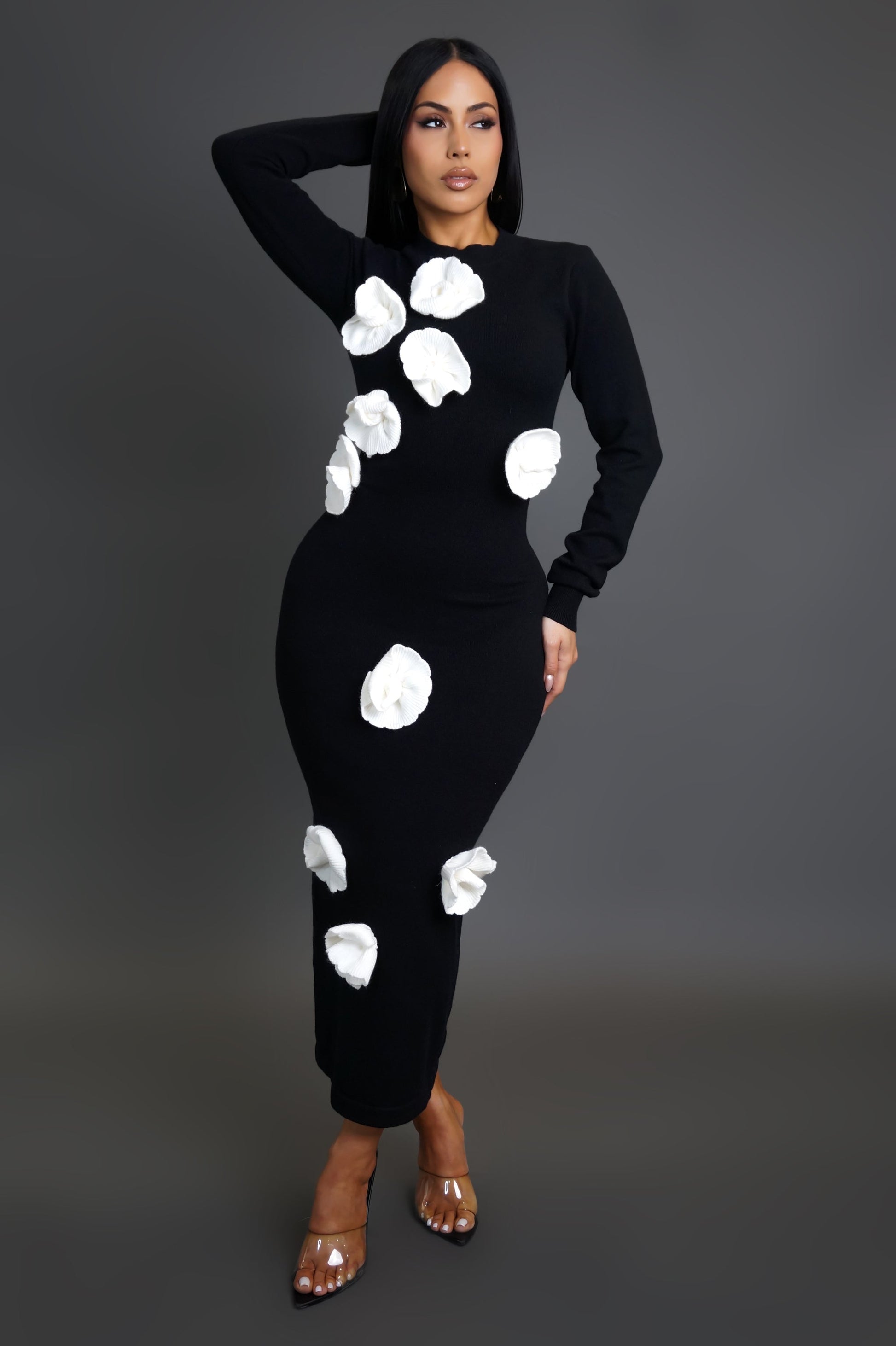 Long sleeve knitted dress with attached roses