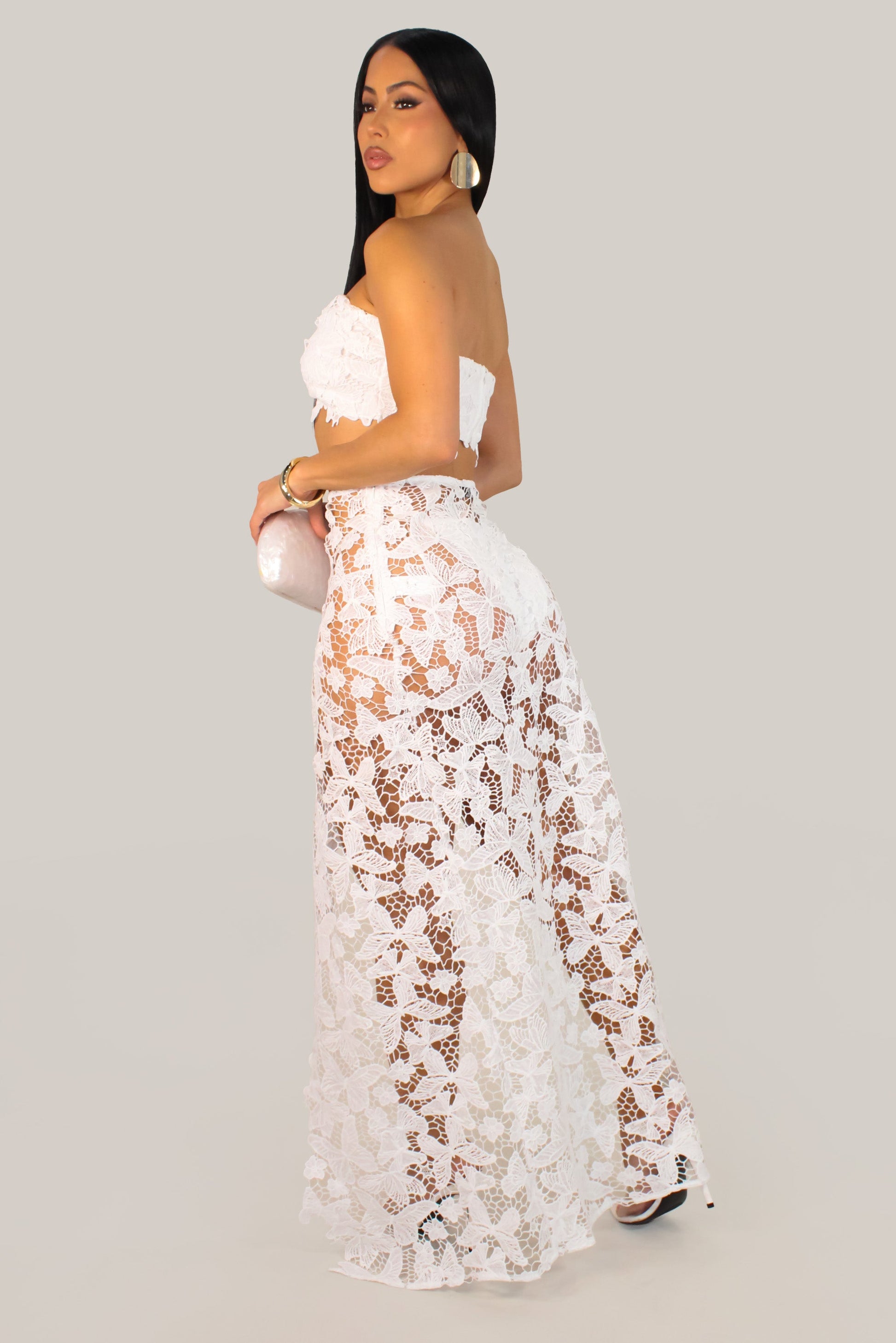 Butterfly Crochet Swimwear Coverup Skirt Set With Matching Underwear- White