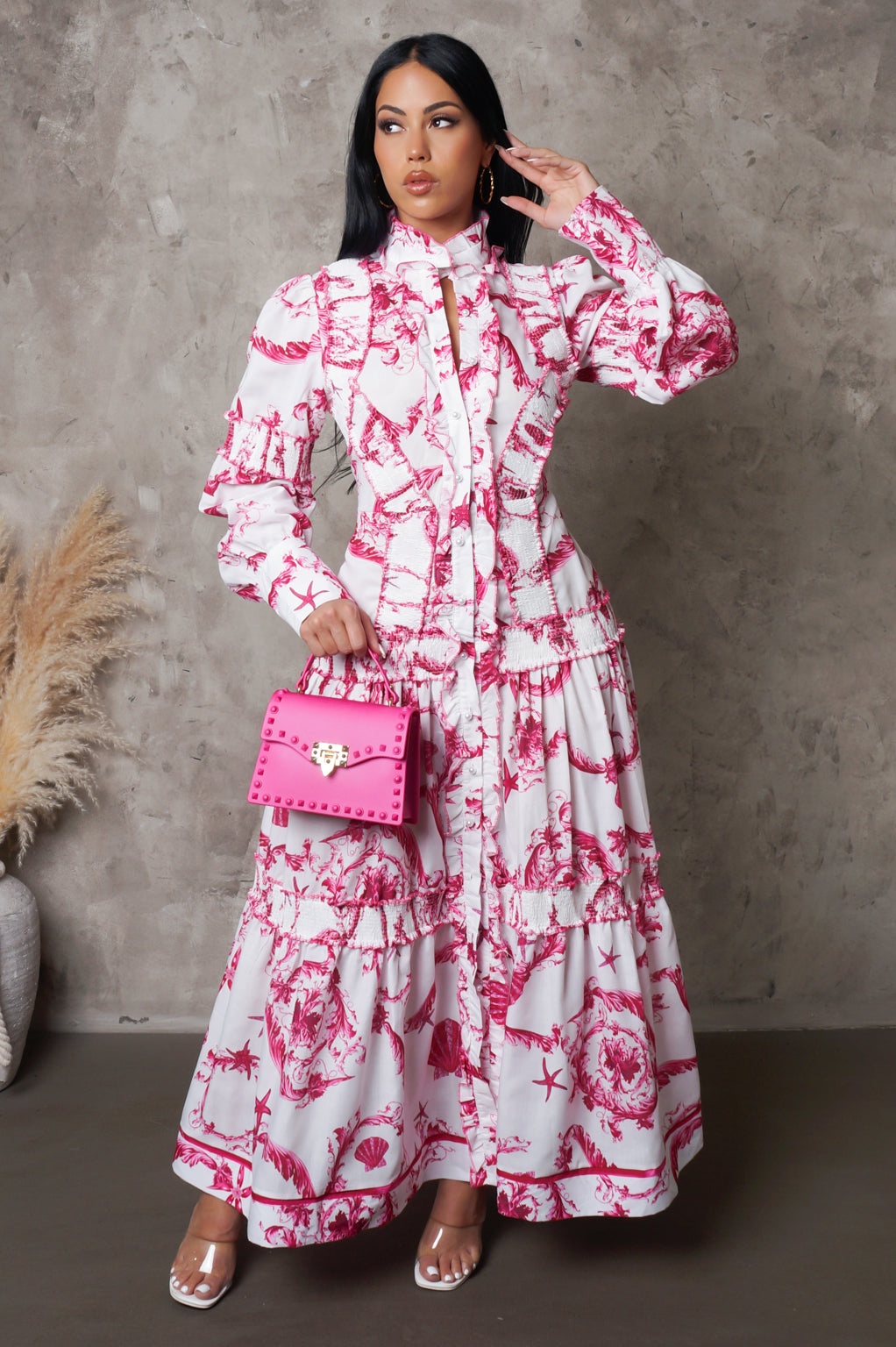 Buttoned Up Pink & White Maxi Dress