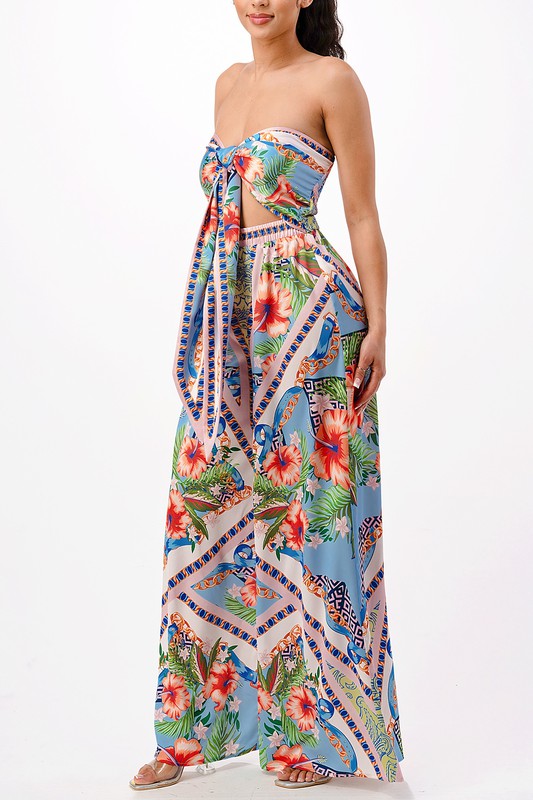 Soft and flowy, wide leg jumpsuit; strapless top that can be styled in many different ways.