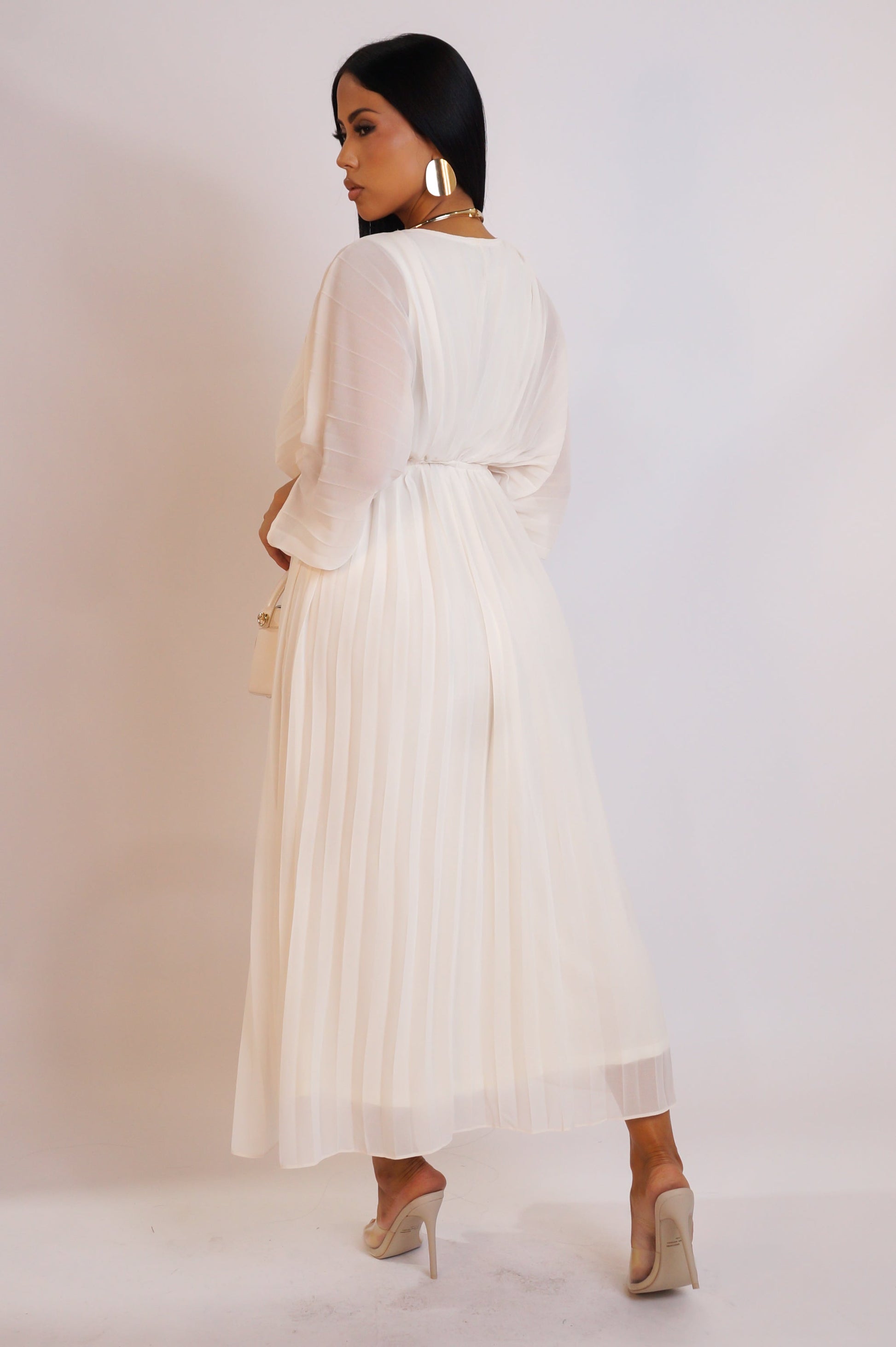 Exquisitely Endearing Loose Pleated Midi Dress- White