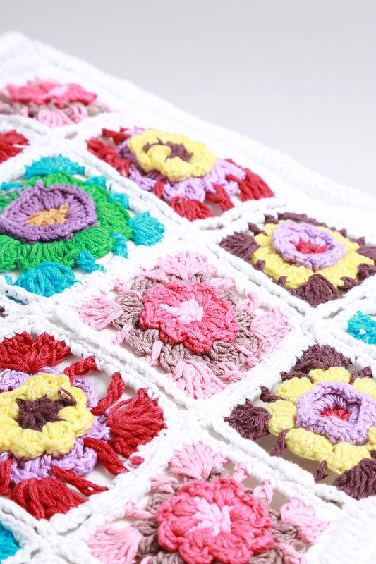 Color block Floral Pattern Crochet Bag
