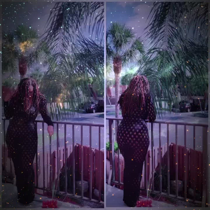 Maxi dress featuring long sleeves with a v neck front; can be worn as a dress or swimwear coverup.