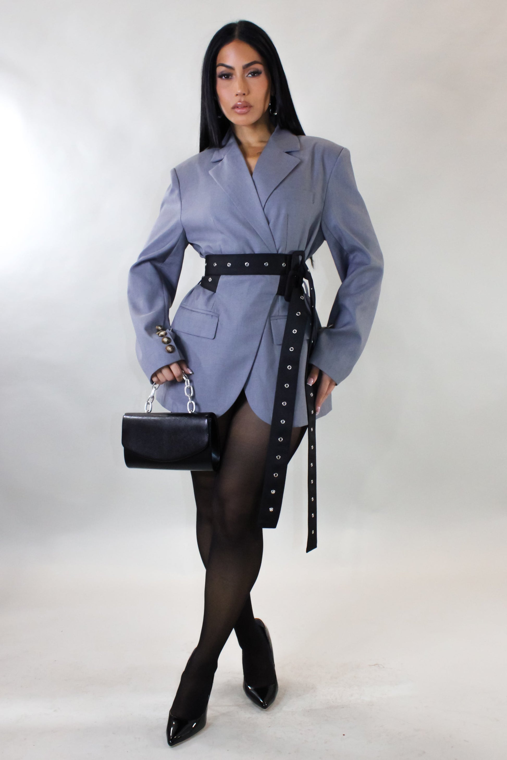 Where sophistication meets modern flair, this blazer commands attention with its sharp tailoring and eye-catching belt detail. Perfect for making a statement, it redefines professional elegance with a bold twist.