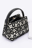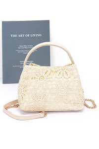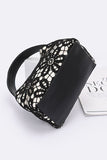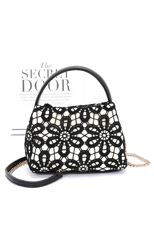 Lace Flower 2 Tone Top Handle Convertible Clutch- 3 Colors