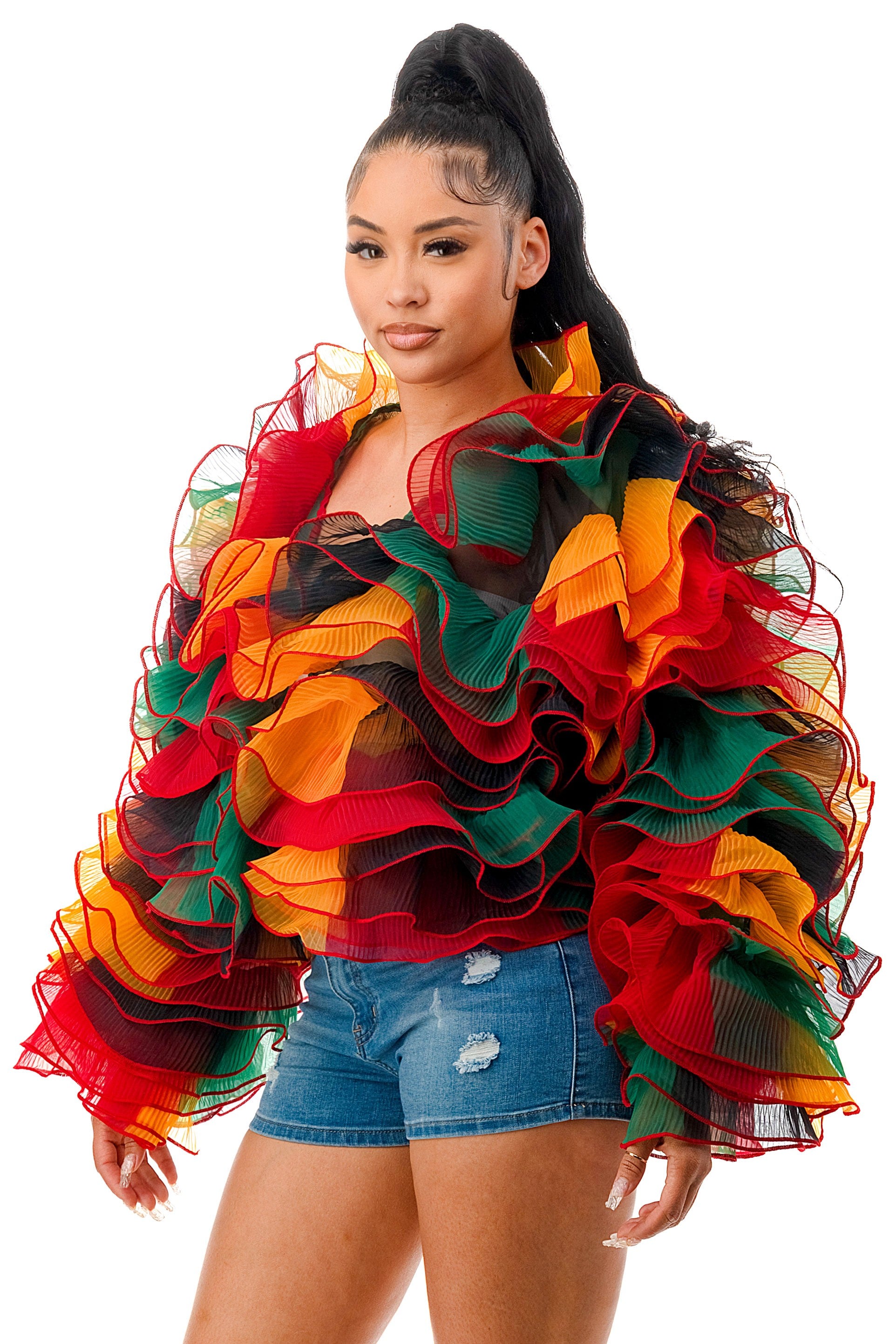 Long Sleeve Ruffle Tulle Bolero Jacket