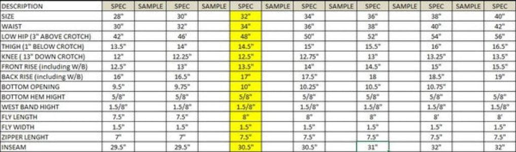 32: null (Shoulder), null (Chest), 34.0 (Waist), null (Length)