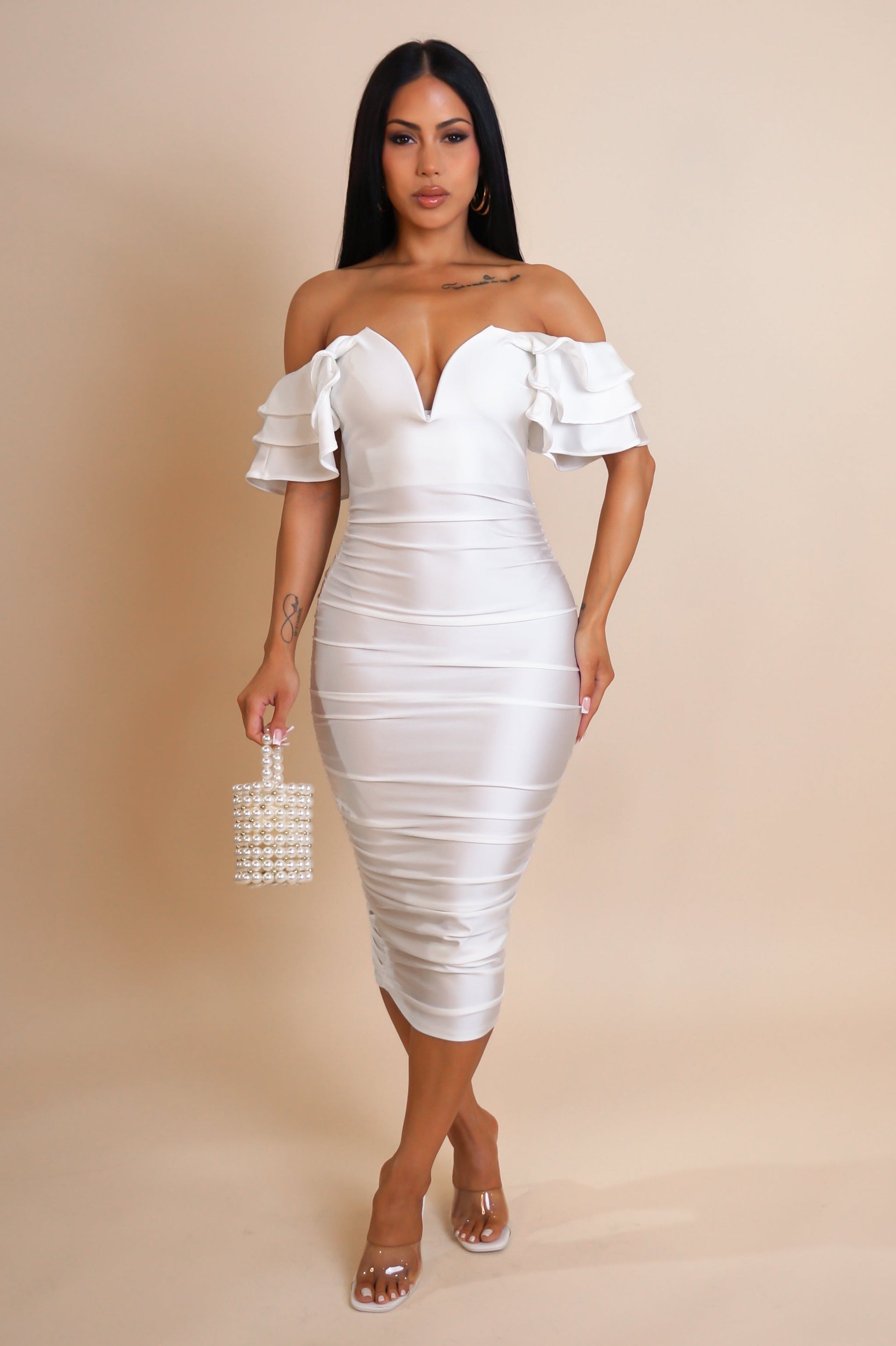 Muse Midi Ruched Dress- White