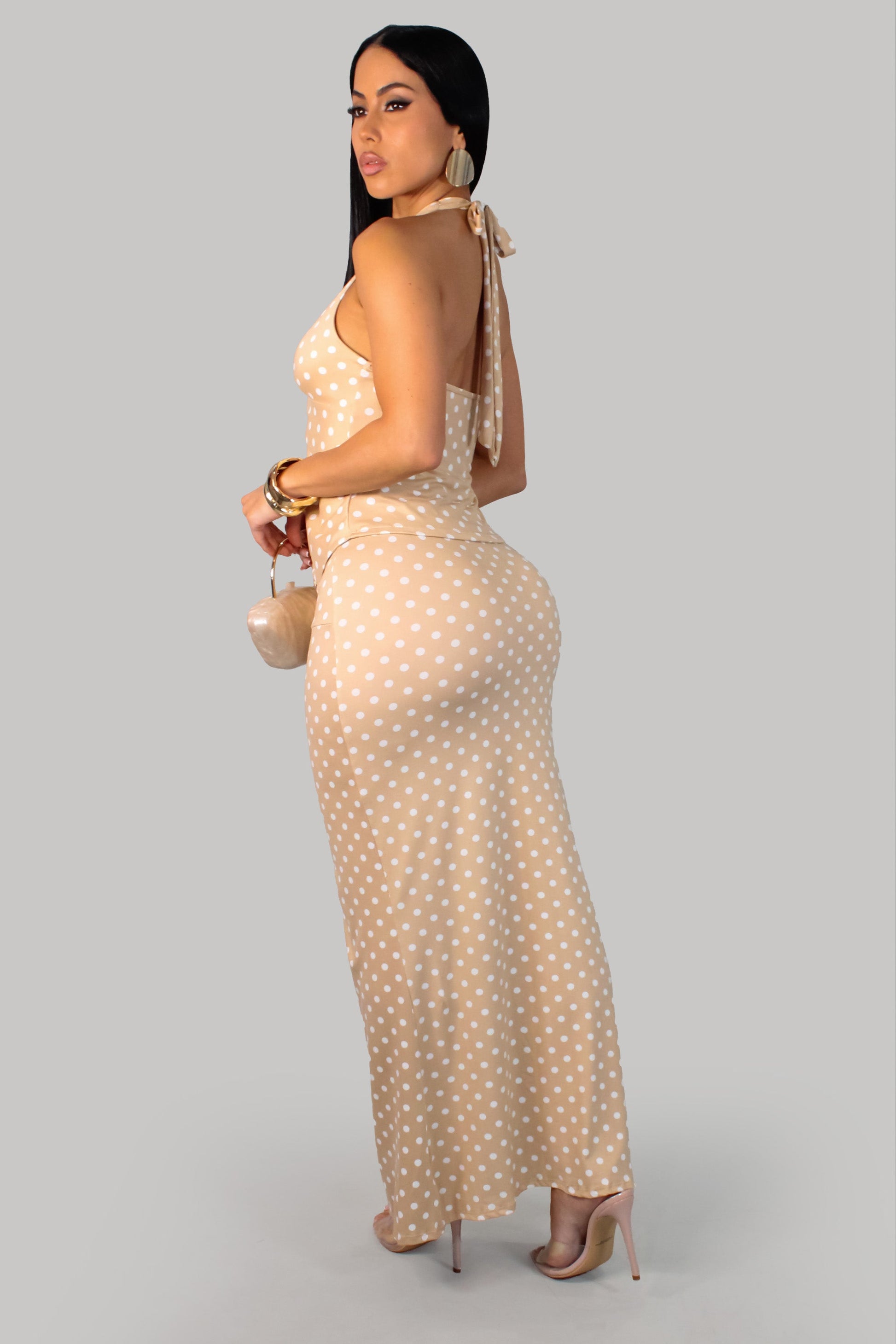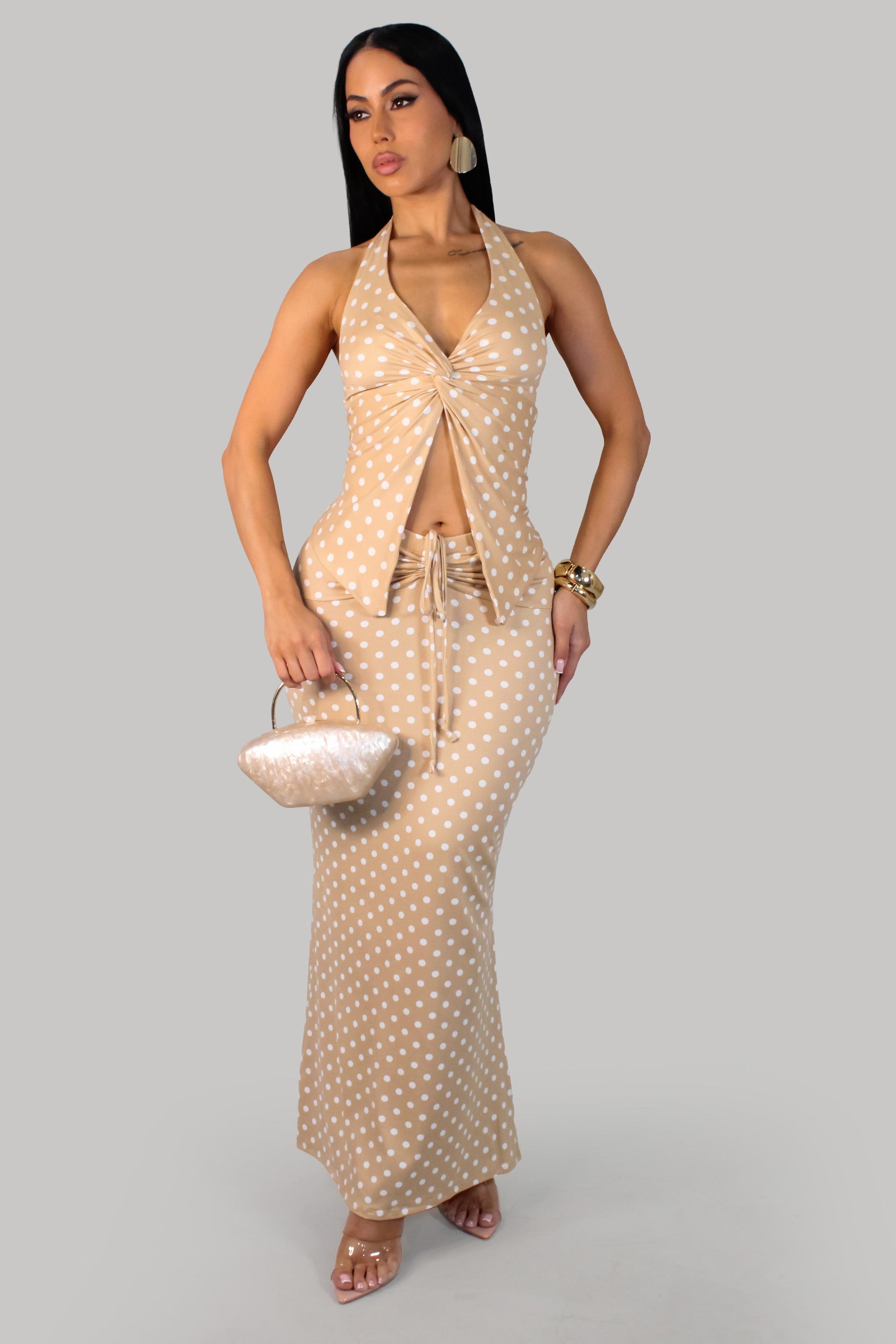 Polka Dot Maxi Skirt Set- Mocha/White (Copy)