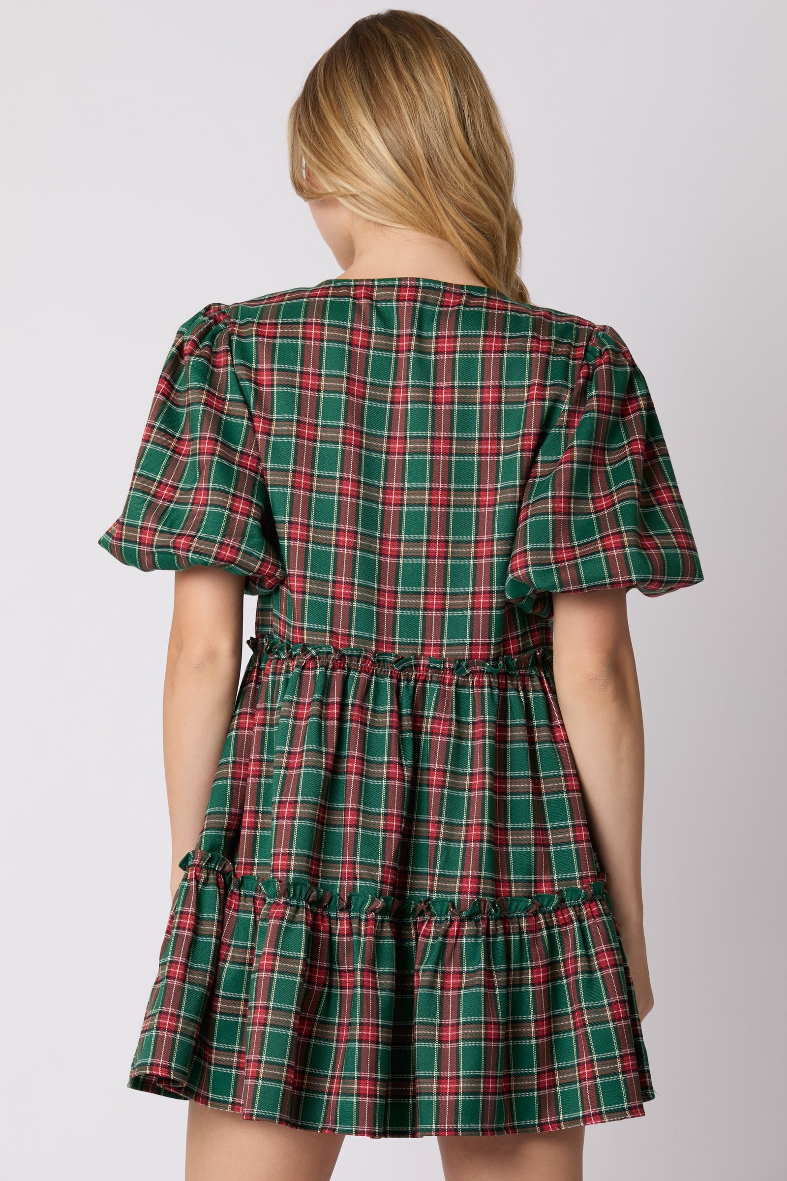 Christmas Bubble Sleeve Mini Dress- PreOrder