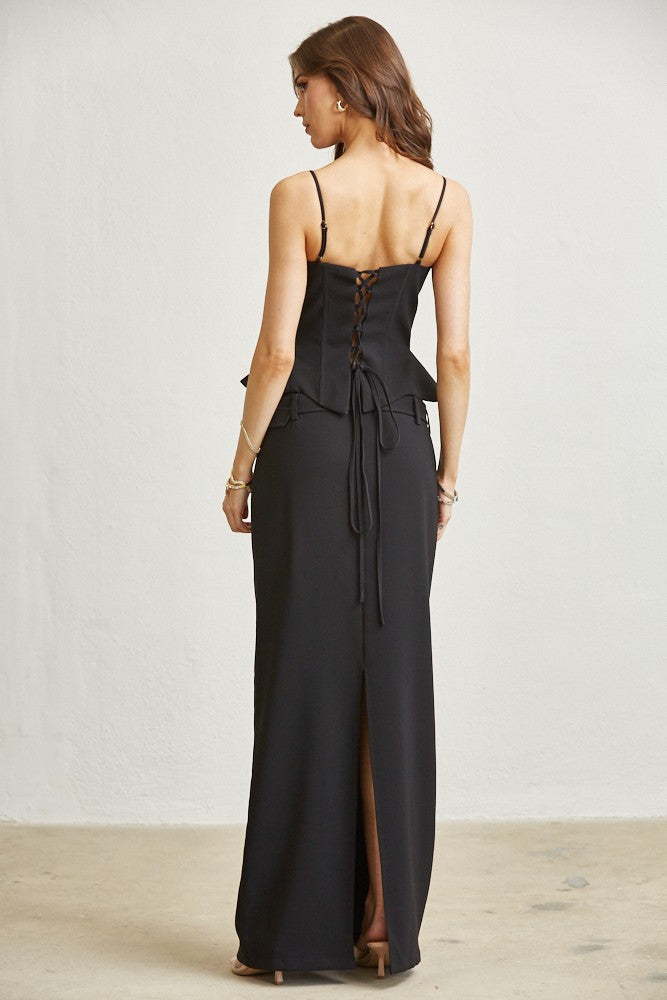 Gold Sequin Peplum Topped Exquisite Skirt Set- Black/Gold