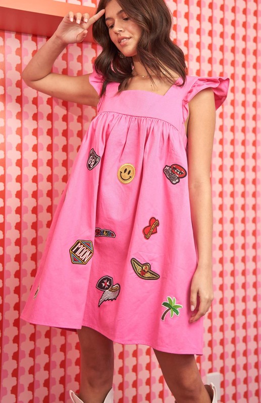 Plus Size Multi Patch Ruffled Streetwear Babydoll Mini Dress-3 Colors