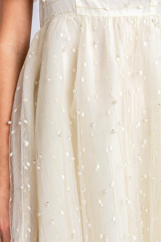 Pearl Mesh Babydoll Mini Dress