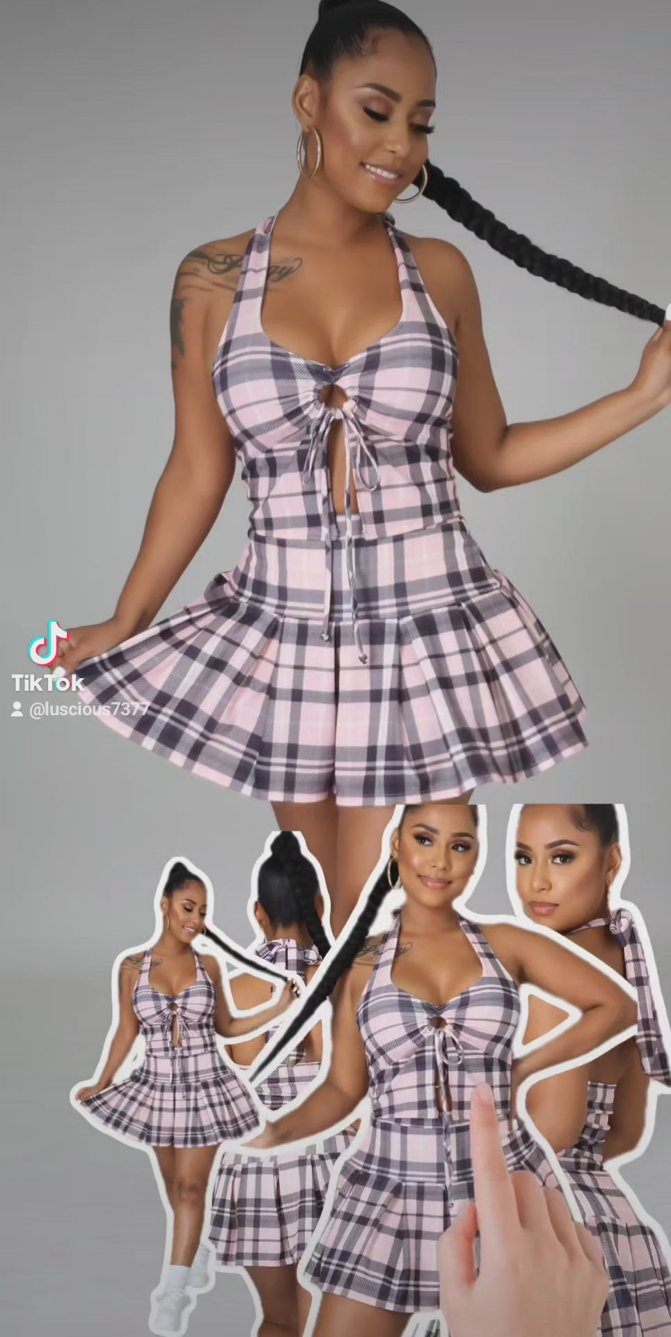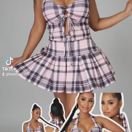 Sexy Plaid Pleated Mini Skirt & Top Set
