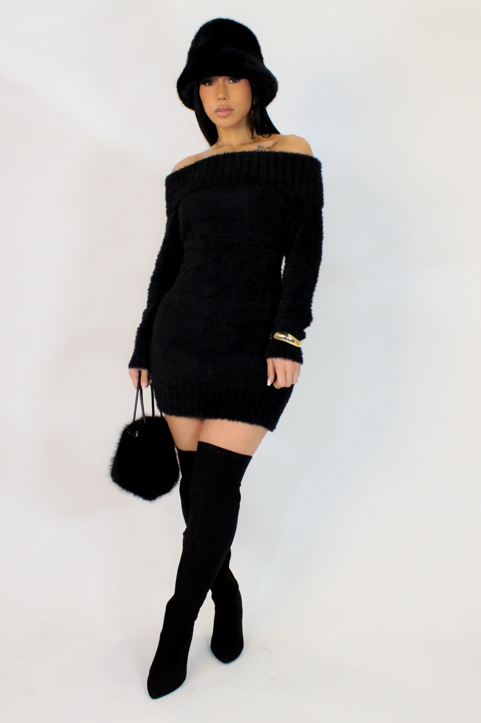 Au Fur Mini Dress- Black