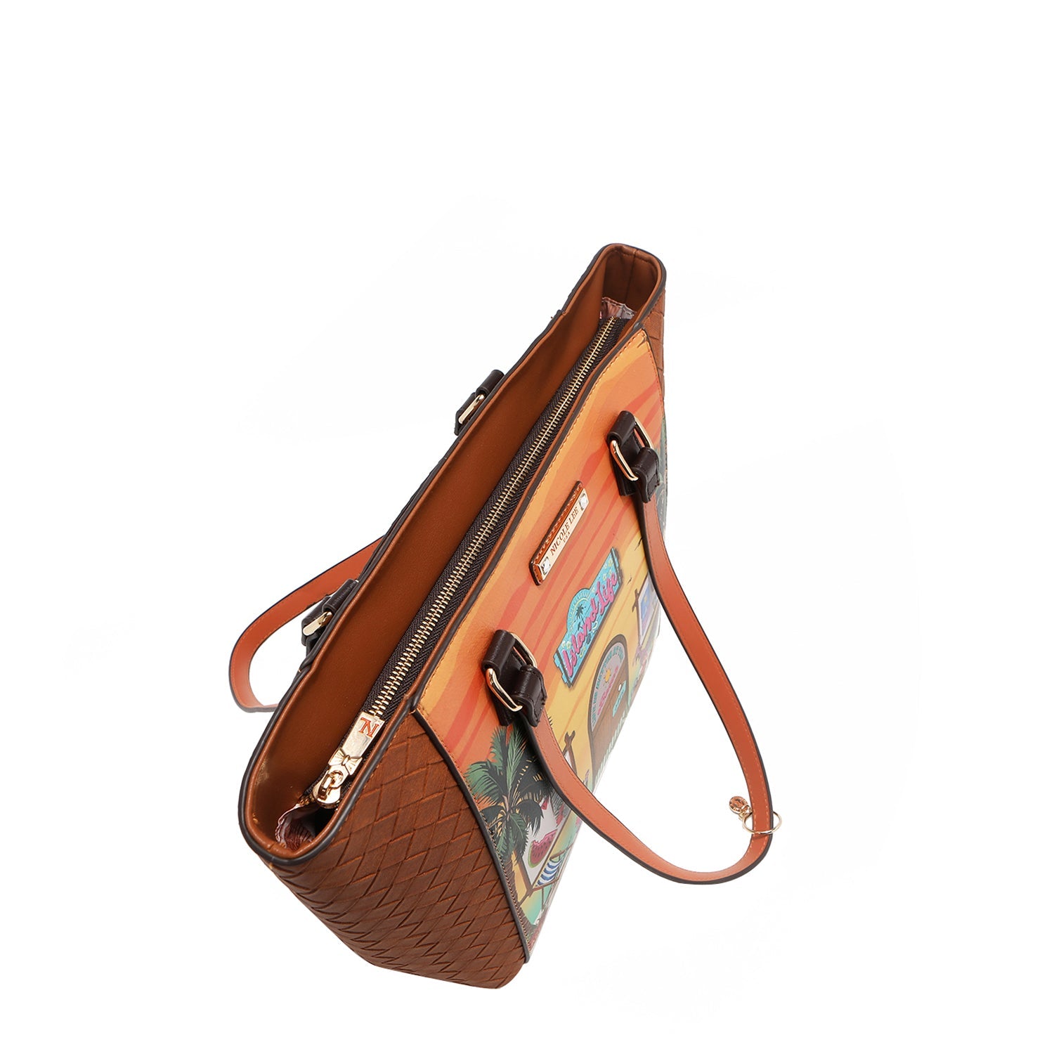 Soak up sunshine vibes with our Sun & Sand Satchel your portable paradise packed with palm trees, beachside hammocks, and all the tropical fun you need!