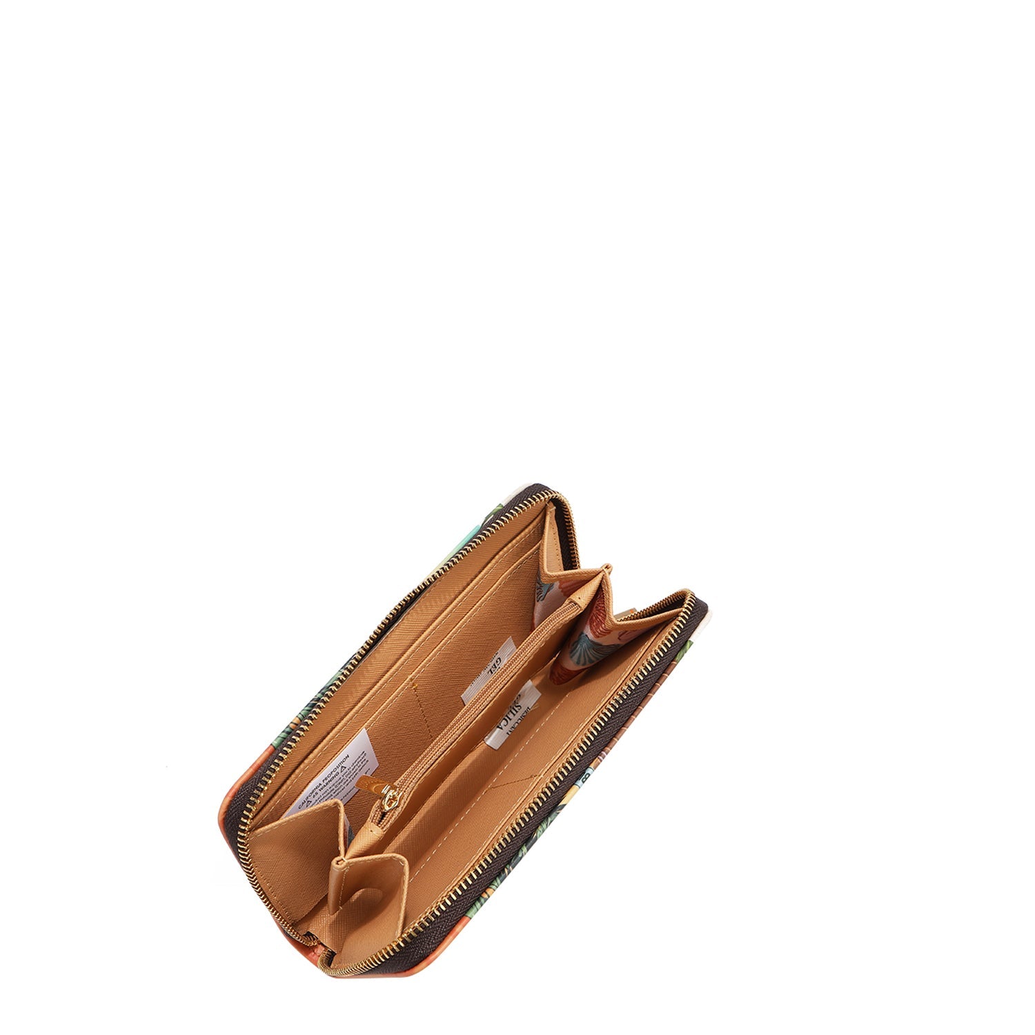 2 interior note sleeves, 4 credit card slots, 1 center zip coin compartment