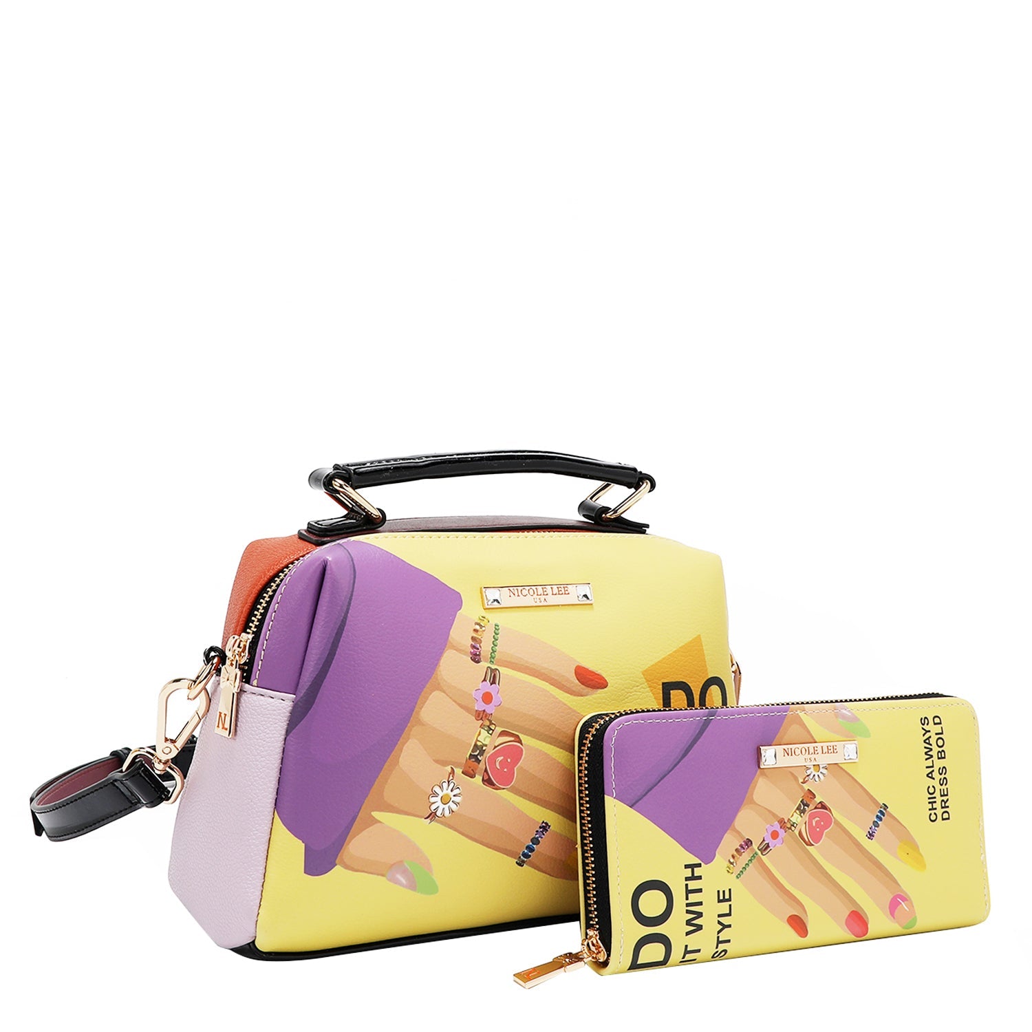 Authentic Nicole Lee USA "Nail Polish" 3 Piece Handbag Set