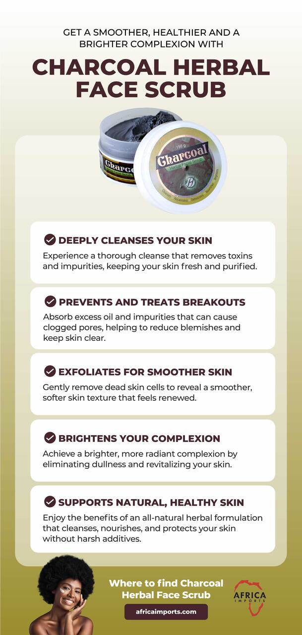 This Charcoal Herbal Face Scrub offers a powerful, natural solution for deep cleansing and detoxifying your skin. Formulated with activated charcoal and a blend of nourishing herbal ingredients, this scrub helps combat daily pollutants and toxins that can dull your complexion.
