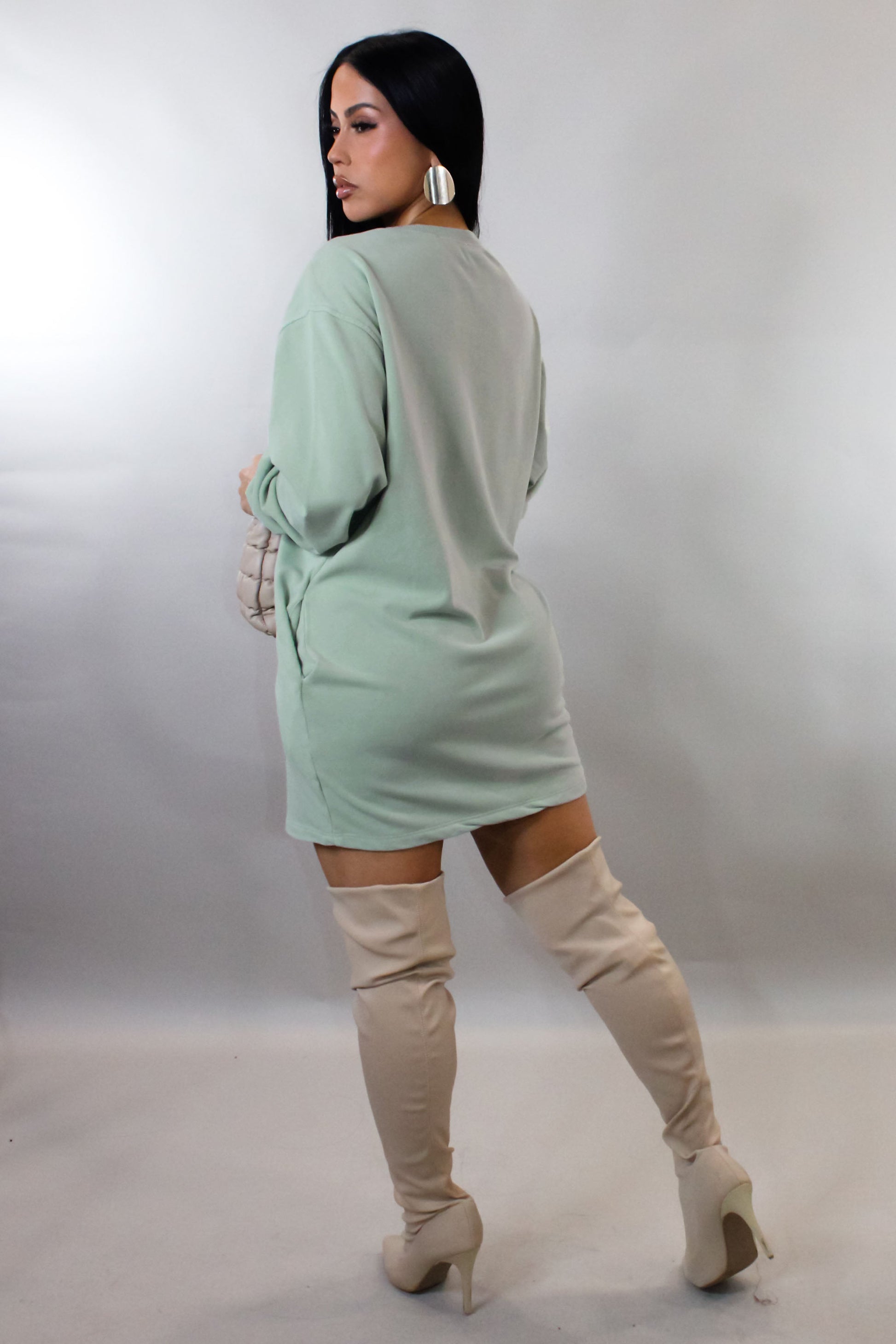 Cozy Nights Mini Dress/Sweater- Sage