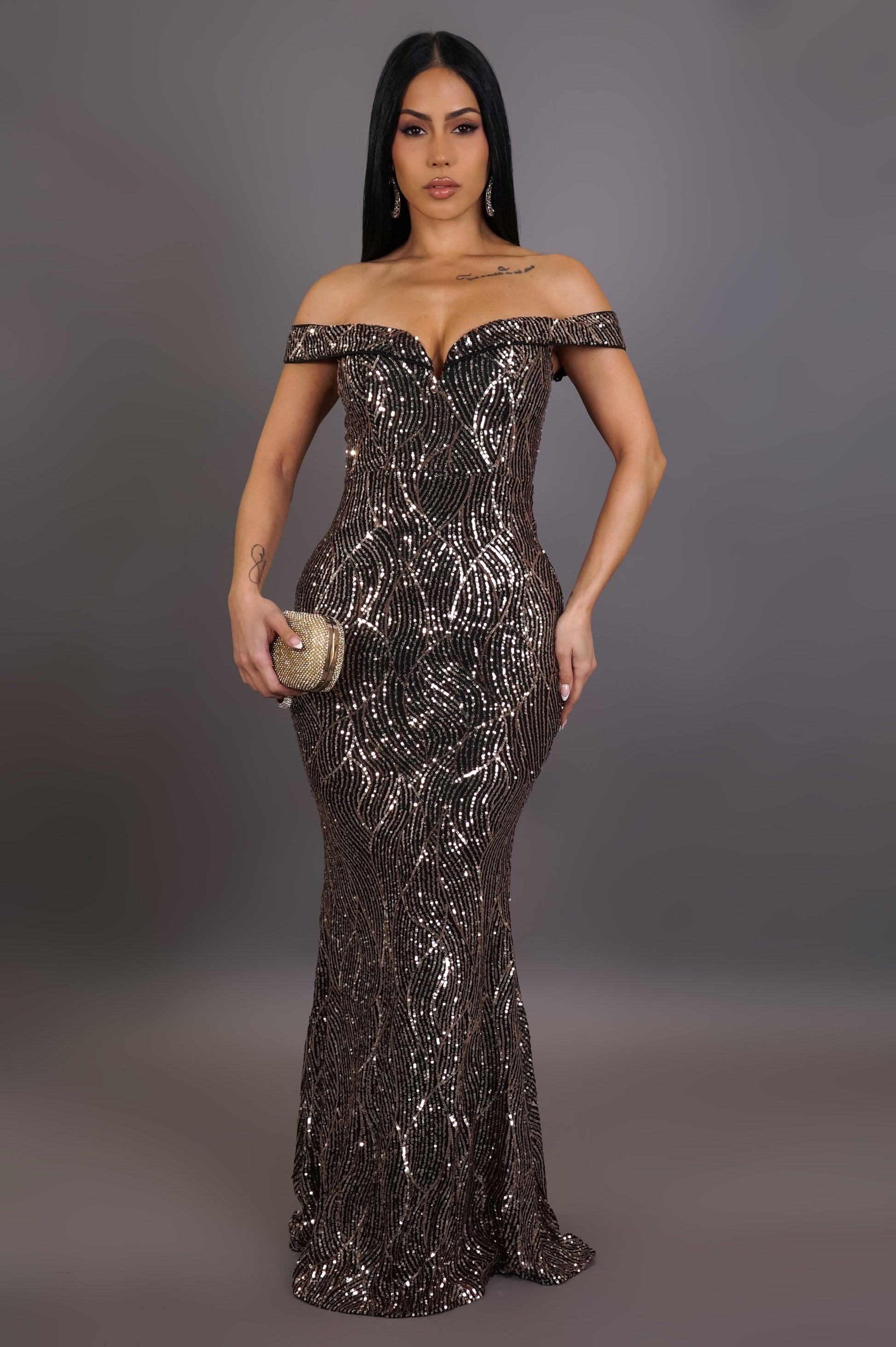 Holiday Gold Sequin Maxi Dress