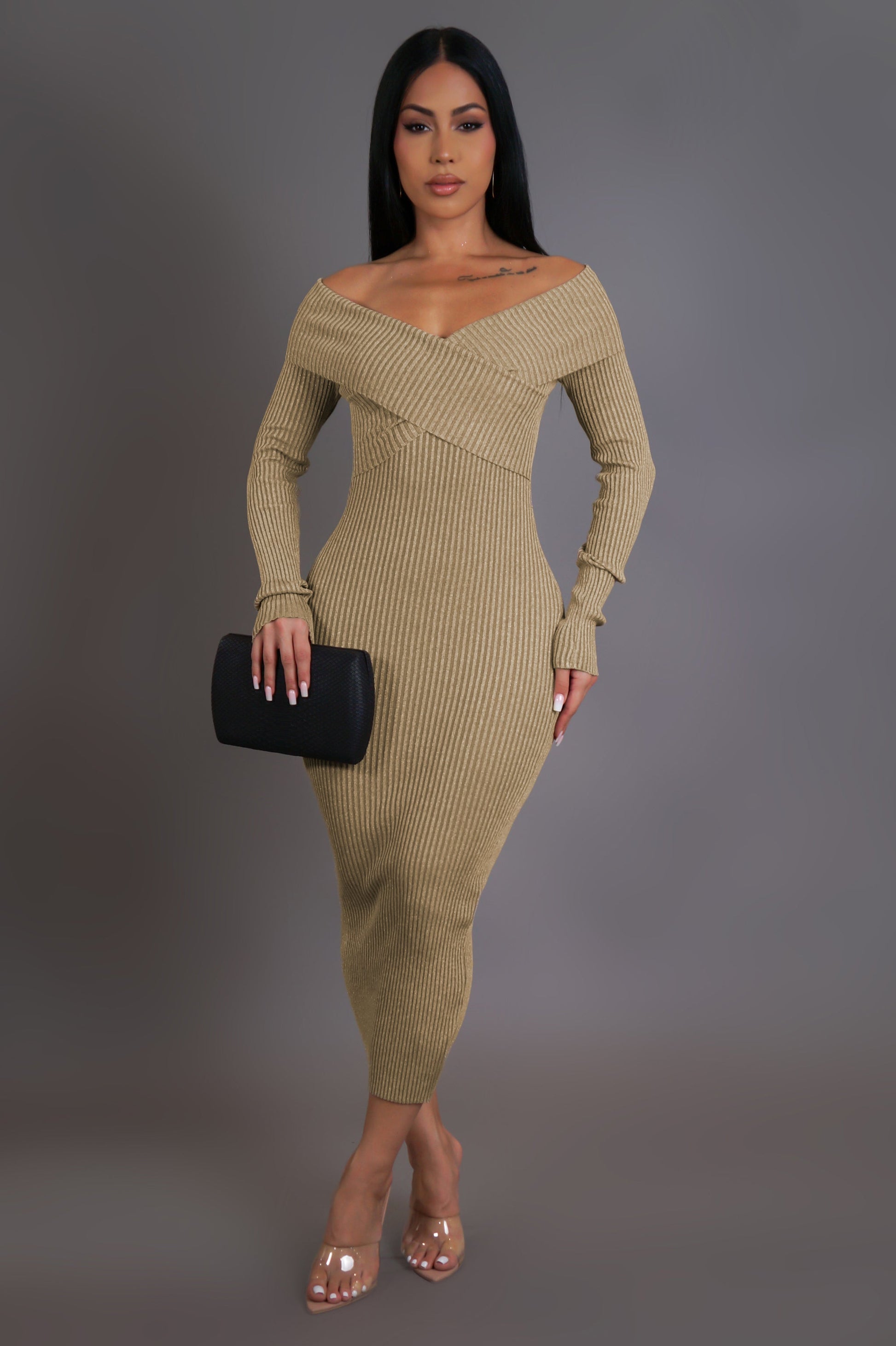 Off Shoulder Criss Cross Long Sleeve Midi Dress