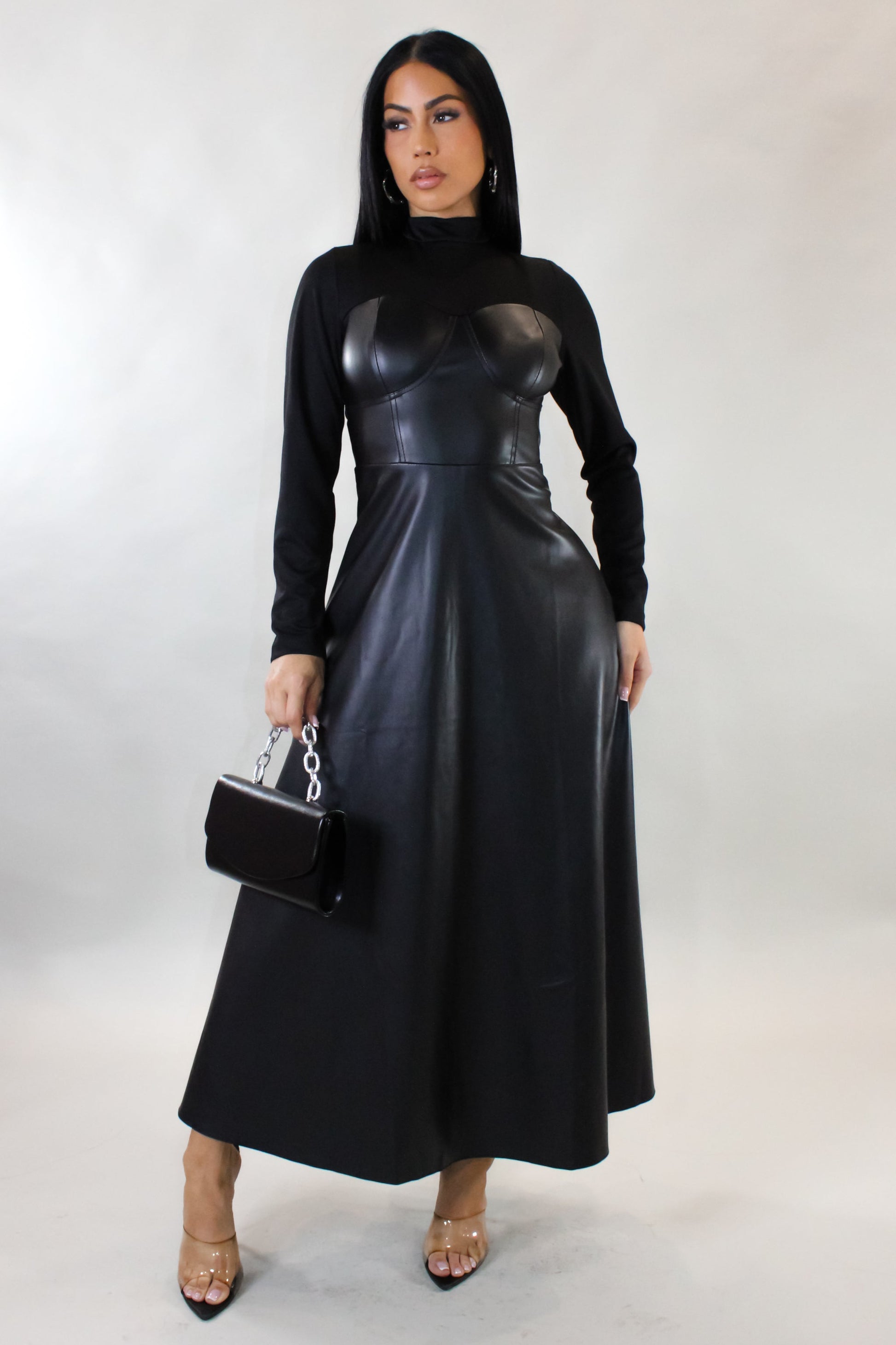 On the Record Leather Midi Dress- Black