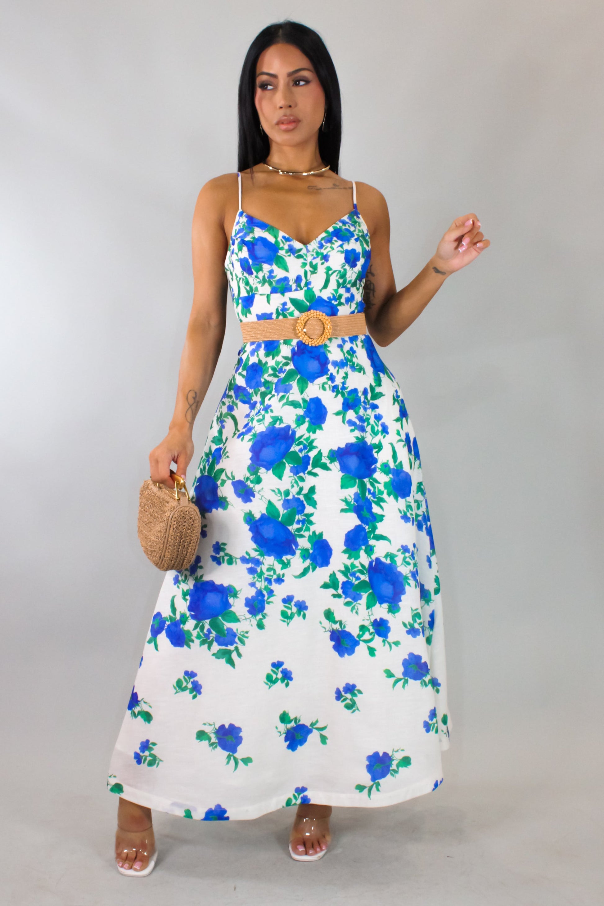 Summer Blues Dress w/ Belt- Blue